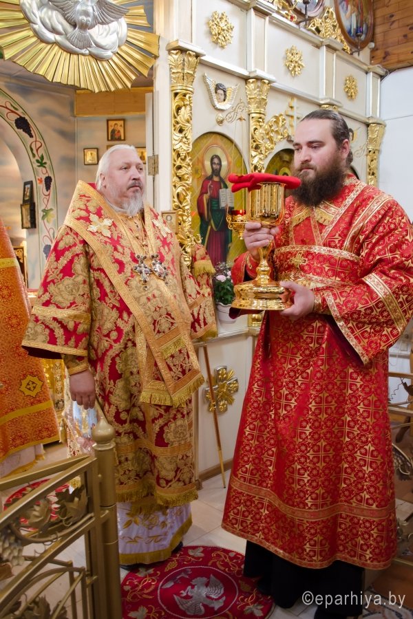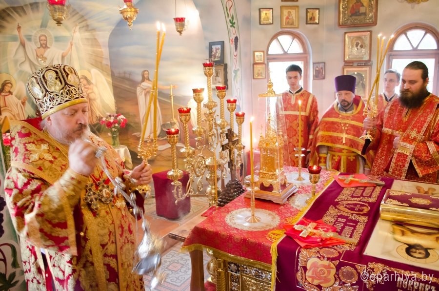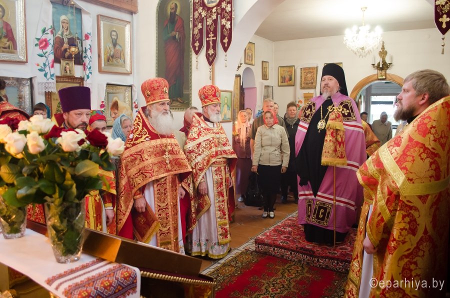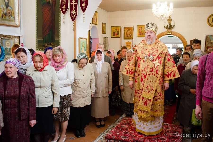 6 мая 2016г., в день памяти вмч. Георгия Победоносца, Преосвященнейший Стефан возглавил Божественную литургию в одноименном храме г.Гомеля. Преосвященному сослужили: секретарь Гомельской епархии протоиерей Георгий Алампиев, благочинный Гомельского городского округа протоиерей Стефан Гладыщук и духовенство прихода. По окончании богослужения Владыка возглавил Крестный ход, поздравил духовенство и прихожан храма с престольным праздником и благословил всех Святым Образом. В этот день приход храма вмч. Георгия Победоносца г.Гомеля празднует 20-летие образования. В связи с этим прихожане и работники храма, особо потрудившиеся на благо прихода были удостоены Преосвященным Стефаном медалями Гомельской епархии. |