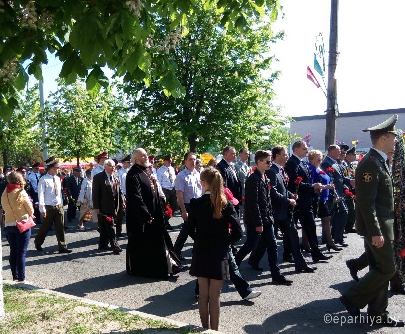 9 мая 2016г. протоиерей Алексей Смотрицкий, благочинный Рогачёвского округа, принял участие в торжественном митинге, посвященном 71-й годовщине победы над немецко-фашистскими захватчиками в Великой Отечественной войне 1941-1945 года. По окончании митинга были возложены цветы к Мемориалу и кургану Славы. Предваряя митинг, в храме святого благоверного князя Александра Невского г. Рогачева священнослужителями прихода отслужено последование благодарственного и молебного пения ко Господу Богу, певаемого в день победы в Великой Отечественной войне. Молебен был отслужен во всех храмах Гомельской епархии. |