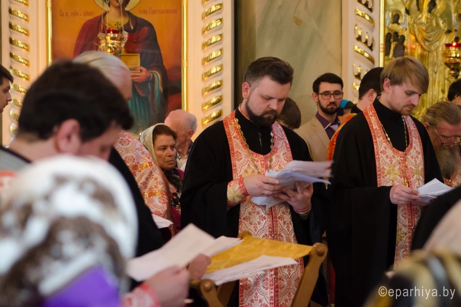 9 мая 2016г., в канун Радоницы, Преосвященнейший Стефан возглавил вечернее богослужение в Свято-Петро-Павловском кафедральном соборе г.Гомеля. Преосвященному сослужили: секретарь Гомельской епархии протоиерей Георгий Алампиев и духовенство собора. По окончании богослужения Владыка обратился к молящимся со словами Архипастырского назидания и благословил всех Святым Образом. |