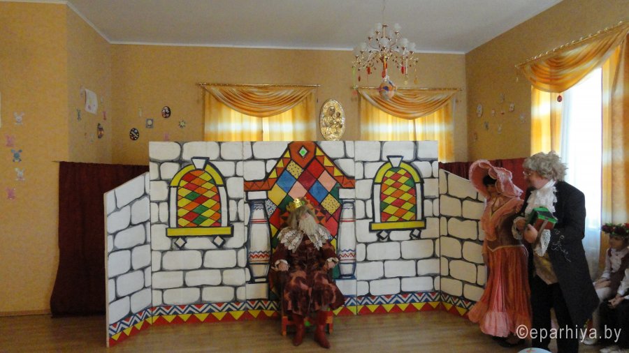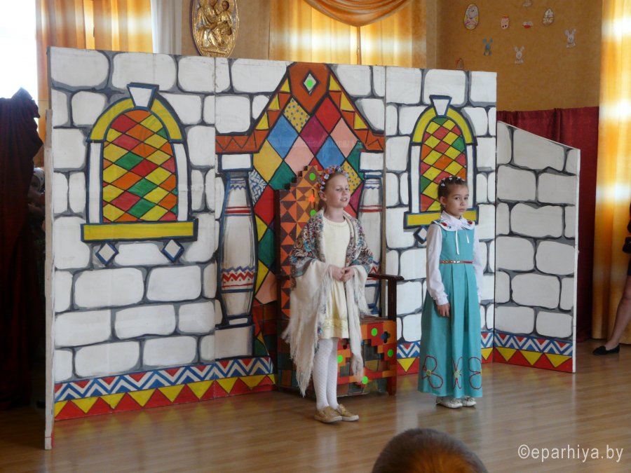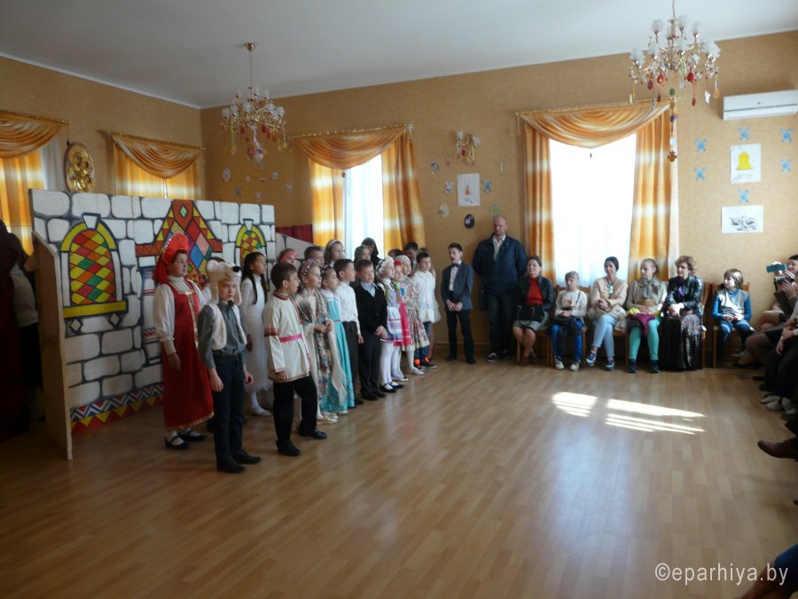 На Светлой Седмице в приходе храма Иверской иконы Божией Матери г.Гомеля прошел ряд мероприятий 5 мая 2016г. в гимназии имени Блеза Паскаля № 46 г. Гомеля состоялось театрализованное Пасхальное костюмированное представление-мюзикл «Сказка о царе Федоте» воспитанников воскресной школы прихода храма иконы Божией Матери "Иверская" г.Гомеля. 7 мая 2016г. на территории храма с участием учащихся гимназии № 71 и гимназии № 46 имени Блеза Паскаля был проведен благотворительный Пасхальный концерт и благотворительная ярмарка с большой конкурсно-игровой программой. 8 мая 2016г. воспитанниками воскресной школы в Улуковском доме–интернате для детей с особенностями психофизического и Дуянвском доме-интернате престарелых и инвалидов прихода было представлено театрализованное Пасхальное костюмированное представление-мюзикл «Сказка о царе Федоте» с большой конкурсной программой. |