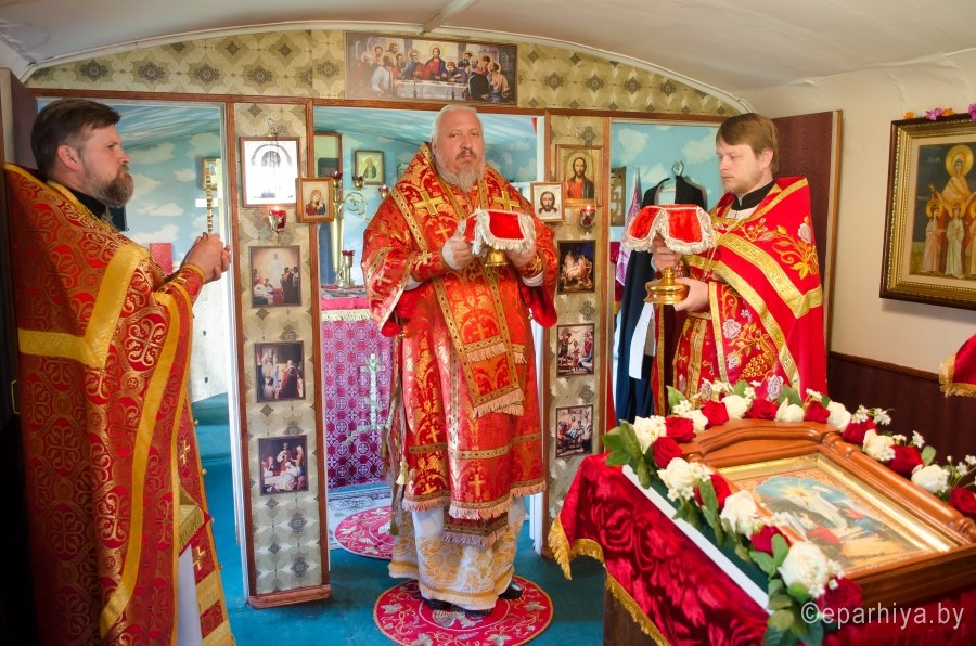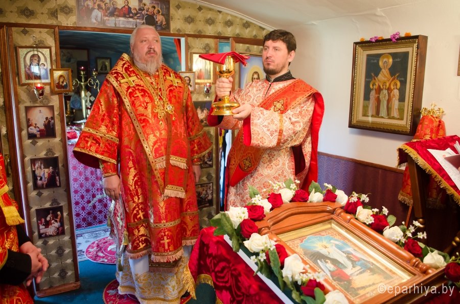 14 мая 2016г., в день празднования иконы Божией Матери "Нечаянная Радость", Преосвященнейший Стефан возглавил Божественную литургию в приходе Веры, Надежды и Любови д.Новая Жизнь. Преосвященному сослужили: секретарь Гомельской епархии протоиерей Георгий Алампиев и духовенство прихода. По окончании Литургии Владыка обратился к священнослужителям и прихожанам со словом назидания, поблагодарил всех за совместную молитву, поздравил причастников с принятием Святых Христовых Таин. Затем протоиерей Евгений Трусилов ознакомил Владыку с планом строительных работ по возведению храма. |