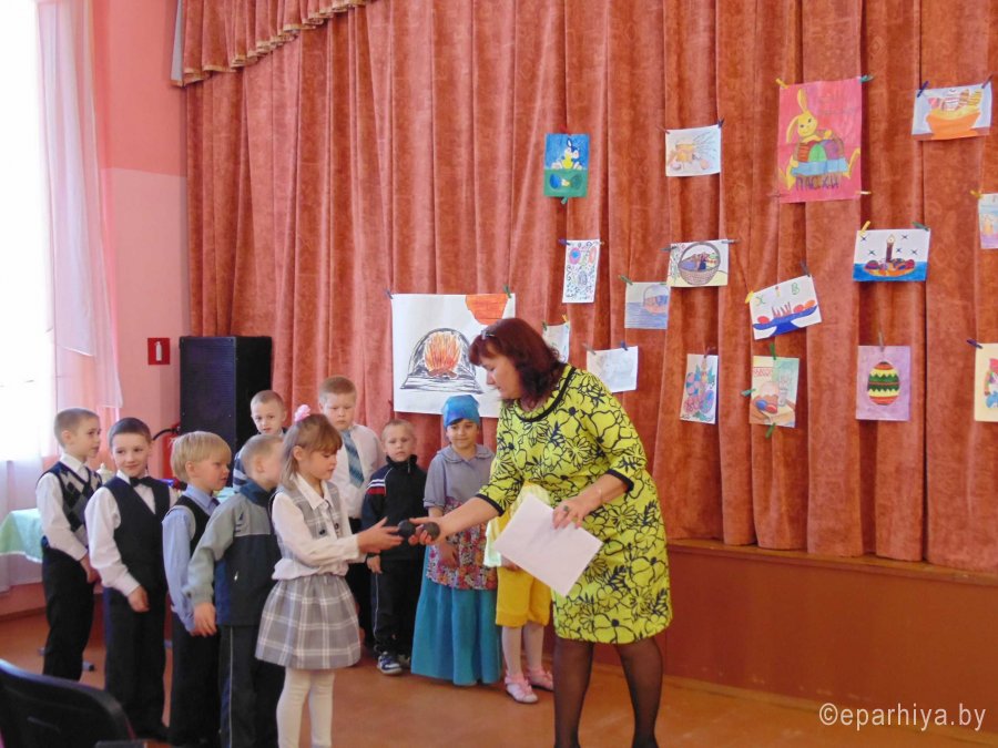 С 30 апреля на приходах благочиния проходила благотворительная акция «Кулич на ладошке». В Добруше двое молодых ребят, прихожан храма свтт. Николая Чудотворца, в сопровождении иерея Иоанна Бухенко, настоятеля храма Успения Пресвятой Богородицы агрогородка Жгунь, по благословению Преосвященнейшего Стефана, епископа Гомельского и Жлобинского, навестили 12 одиноких людей и инвалидов, жителей города. Они вручили им продуктовые наборы и пасхальные куличи, предоставленные благочинным округа, протоиереем Алексием Пилипенко. В период празднования Пасхи школьники посещали храмы благочиния. 30 апреля ученики шестых классов ГУО «Средняя школа №2 имени Ф.Я.Кухарева г.Добруша» посетили храм Свенской иконы Божией Матери комплекса храма Святого Благоверного князя Олега Брянского. Настоятель прихода иерей Алексий Рыкалин провел беседу с ребятами. Священник рассказал детям о Великом посте, о празднике Воскресения Христова, о страданиях, смерти и Воскресении Господа нашего Иисуса Христа. «Пасха — это праздников праздник и торжество из торжеств! Нет большего праздника на земле, чем Пасха. Это победа над смертью! Победа над адом! Господь своим Воскресением дал нам жизнь вечную!» — сказал отец Алексий. В завершение священнослужитель рассказал о Великом посте, о традиции красить яйца, о том, как правильно нужно праздновать Пасху. Храм святителя Николая Чудотворца посетила большая группа школьников — учащихся «ГУО СШ №1 г. Добруша». В учреждениях образования проводились праздничные мероприятия, утренники, посвященные Светлому Христову Воскресению. 3 мая в ГУО «Гимазия г. Добруша» состоялся Пасхальный концерт. Ребята пели, танцевали, показывали театрализованное представление. Слова поздравления и благословения произнес протоиерей Евгений Шупеня, помощник благочинного по религиозному образованию и катехизации. 7 мая в «ГУО СШ №5 г. Добруша» состоялось заседание православного родительского клуба по теме «Духовное воспитание детей на православных традициях». Перед родителями учащихся православного факультатива выступили директор школы Сидорцова В.В., педагоги школы. Пастырское слово произнес помощник благочинного по религиозному образованию и катехизации протоиерей Евгений Шупеня: «Наше отношение к воспитанию должно основываться на вере. Если мы веруем, мы доверяем к Богу. Во-первых, доверяем Его словам, записанным в священном писании. Эта книга для нас авторитет в том числе в вопросах воспитания. Доверяем и действиям Бога в этом мире, Его вразумлениям, наказаниям. Мы допускаем Бога в свою жизнь, просим, чтобы он нами руководил». По окончании заседания все отправились в актовый зал, где состоялся детский пасхальный праздник-концерт и чаепитие. 4 мая храм святителя Николая Чудотворца в г. Добруше посетили ребята, с особенностями психофизического развития, воспитанников Добрушского РЦКРОиР и группы дневного пребывания инвалидов ТЦСОН. Они совершили пасхальный крестный ход. В храме была организована выставка-ярмарка пасхальных сувениров, сделанных их руками. 12 мая на базе ГУО «Добрушский районный центр дополнительного образования» состоялось подведение итогов смотра-конкурса детского прикладного творчества учащихся общего среднего и дополнительного образования «Пасхальный Фестиваль». Ребята представили рисунки, поделки, рас