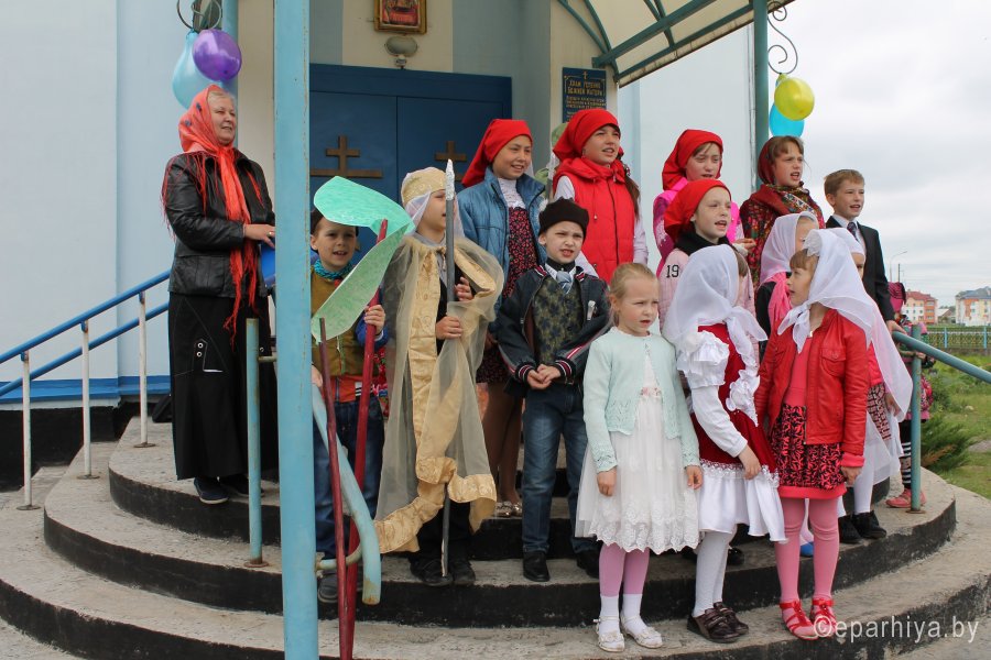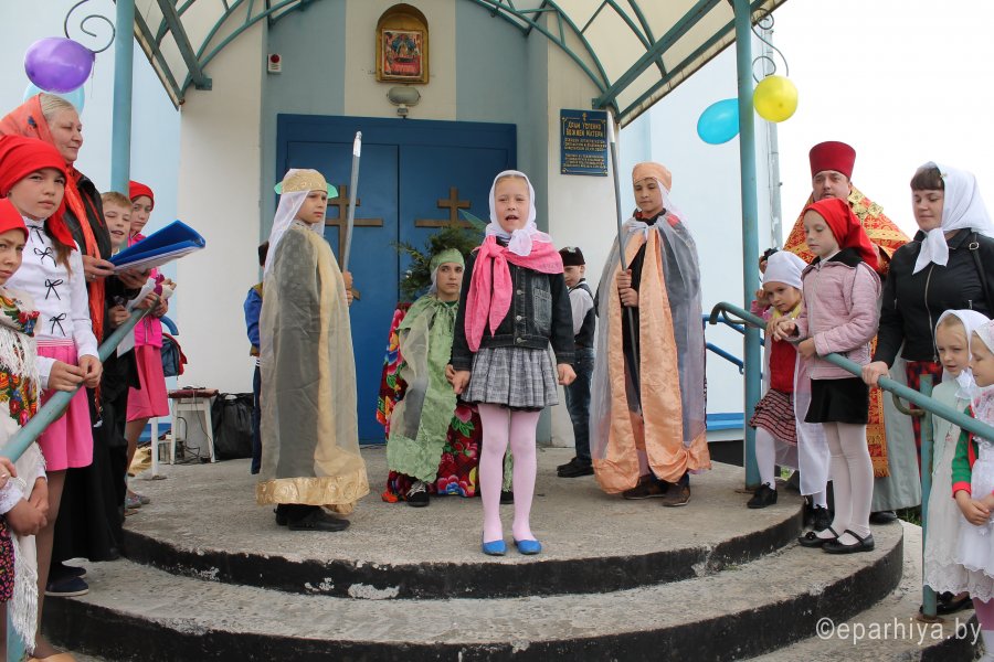 15 мая 2016 года в приходе храма Успения Пресвятой Богородицы в аг. Красное Гомельского района отпраздновали День жен-мироносиц. В это светлый день, когда Церковь прославляет святых жен, воспитанники воскресной учебно-воспитательной группы прихода порадовали всех собравшихся благотворительной выставкой-продажей пасхальных поделок и сувениров и красочной театрализированной постановкой. Перед зрителями предстали образы Марии Магдалины и императора Тиберия. Вновь были услышаны слова сомнения в факте воскресения и вновь были произнесены слова, подтверждающие это. Как известно, при встрече Марии Магдалины и императора, произошло что-то, что было более слов – поднесенное императору яйцо стало красным. Постановка была душевно принята зрителями. Юные актеры были вознаграждены аплодисментами. Да и как может быть иначе, ведь дети вновь напомнили о тех, кто проповедовал самим апостолам, о святых женах-мироносицах. |