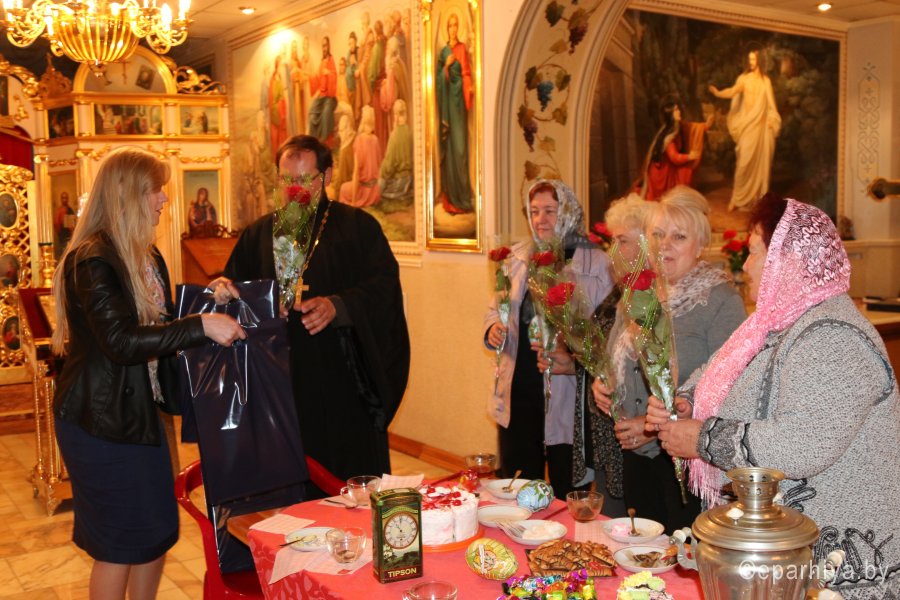 18 мая 2016 года в нижнем храме Свято-Петро-Павловского кафедрального собора г. Гомеля состоялась встреча протоиерея Александра Лопушанского, настоятеля храма Священного мученика Алексия пресвитера Лельчицкого и протоиерея Игоря Ольшанова, настоятеля храма святого Архангела Михаила в городе Гомеле, Председателя отдела по взаимодействию Гомельской епархии с Вооруженными Силами и правоохранительными органами с представительницами Гомельского областного отделения Белорусской общественной организации солдатских матерей. Встреча была приурочена к празднованию Дня Жен-Мироносец. «Женщина-мать в Православной Церкви была и будет символом особого почитания и уважения. Деятельность организации солдатских матерей всегда являла собой пример для подражания всем матерям, воспитывающим сыновей – будущих защитников Отечества» - отметил протоиерей Игорь Ольшанов. Встреча прошла в дружеском ключе. Были рассмотрены вопросы взаимодействия Гомельской епархии и общественной организации. В завершении встречи в честь празднования Дня Жен-Мироносец представительницам организации были вручены подарки от епископа Гомельского и Жлобинского Стефана. |