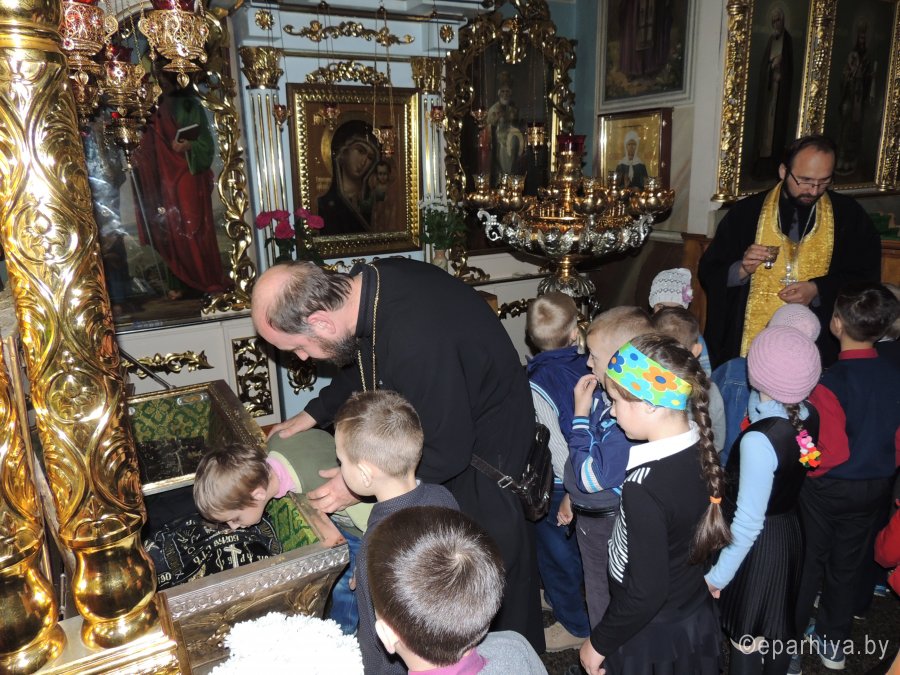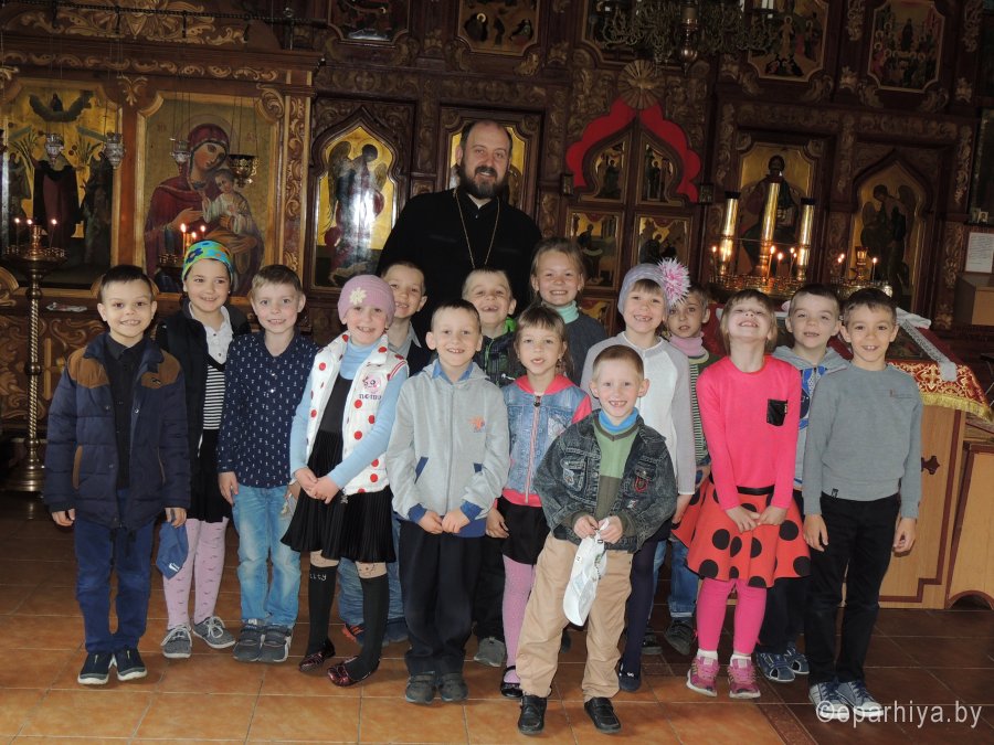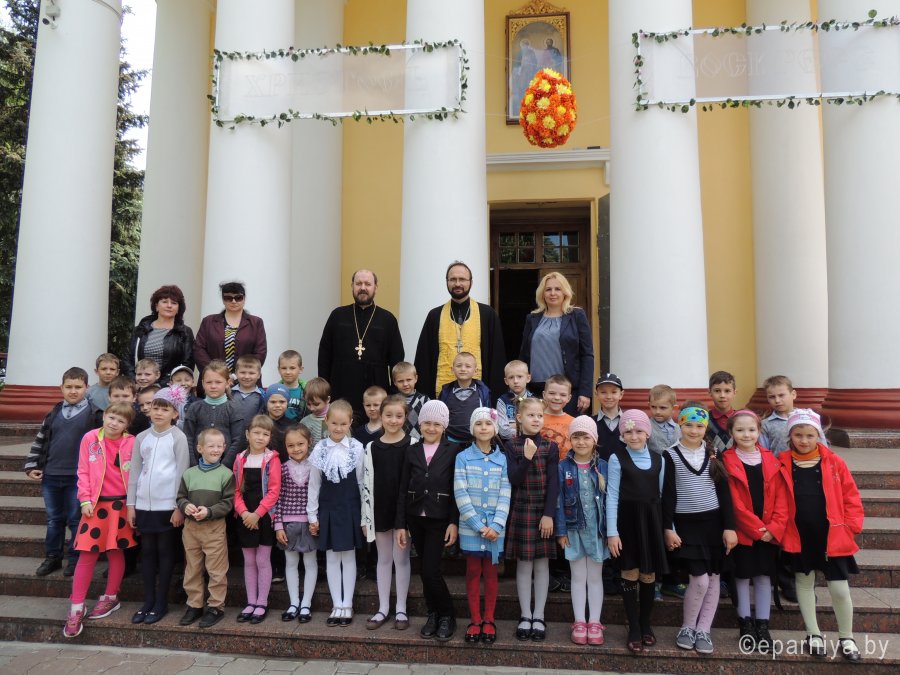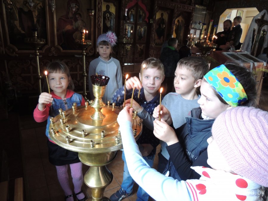 16 мая 2016 в рамках Пасхального фестиваля настоятель прихода храма Покрова Пресвятой Богородицы в а.г. Еремино Гомельского района протоиерей Владимир Новиков провел экскурсии с учениками двух 1-х классов ГУО "Ереминская СШ". В ходе экскурсий дети посетили собор святых апостолов Петра и Павла в г.Гомеле. Их ждала ознакомительная прогулка по территории собора. В самом соборе дети приложились к мощам св. прп. Манефы Гомельской, о житие которой им рассказал протоиерей Александр Лопушанский. Также в ходе экскурсии дети посетили городскую выставку детского творчества "Пасхальная радость глазами детей". Завершился день экскурсией по храму Покрова Пресвятой Богородицы в а.г. Еремино. Детям было рассказано, что такое молитва, и для чего в храмах возжигаются свечи. Заинтересованно выслушав теорию, детвора приступила к практике. Розданные свечки малыши робко зажигали и трепетно ставили на подсвечники с простой детской молитвой, возможно о том, чтобы мама и папа были здоровы и чтобы покупали побольше конфет. |