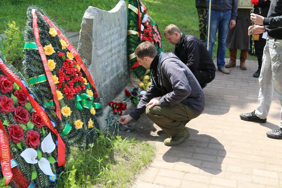 По благословению митрополита Минского и Заславского Павла, Патриаршего Экзарха всея Беларуси, 22 мая 2016 года был организован Пасхальный крестный ход на автомобилях в честь 71-й годовщины победы в Великой Отечественной войне по Гомельской области. Данное мероприятие началось 19 мая 2016 года и уже прошло по многим областям Республики Беларусь. Одним из организаторов выступает Молодежное благотворительное общественное объединение «Город без наркотиков». Участники акции посетили памятник воинам, погибшим в Великой Отечественной войне в д. Поколюбичи Гомельского района. На месте захоронения Председателем отдела по взаимодействию Гомельской епархии с Вооруженными Силами и правоохранительными органами протоиереем Игорем Ольшановым была совершена лития по погибшим в годы Второй Мировой войны на Белорусских землях. «Почтим светлую память погибших воинов, тех, кто сложил головы на благо нас, ныне живущих» – отметил протоиерей Игорь Ольшанов. В мероприятии приняли участие воспитанники Военно-патриотического клуба "Честь", руководитель Рахматов Ю. Ю., под руководством которого вот уже больше 10 лет молодые юноши и девушки определяют свои жизненные приоритеты. «Сегодняшний день в моей памяти останется особенным, будучи потомственным военным: мой прадед Бейлин Б. Г. воевал в Великую Отечественную войну, мой дед подполковник Бейлин А. Б. проходил службу на Байконуре, мой отец действующий офицер Вооруженных Сил Республики Беларусь, а моя мать военнослужащая внутренних войск. Поэтому мой долг – продолжать наследие моих родных» – поделился воспитанник военно-патриотического клуба «Честь» Данила Маруняк. В завершении торжественного мероприятия к мемориалу собравшиеся возложили венки. |