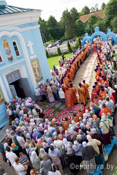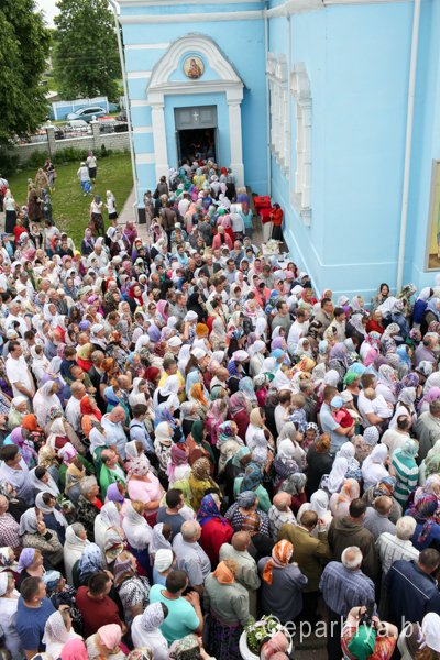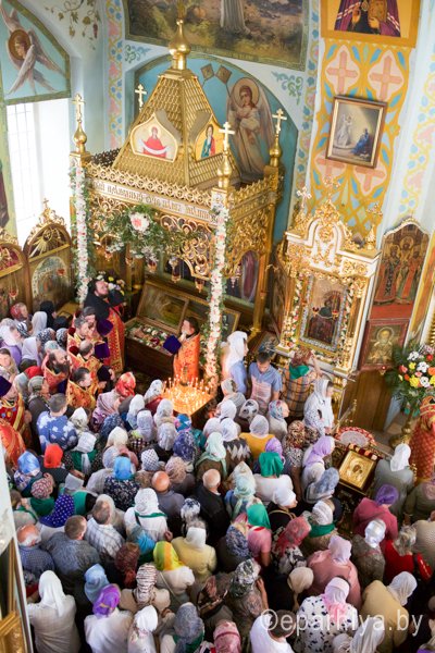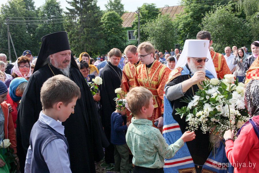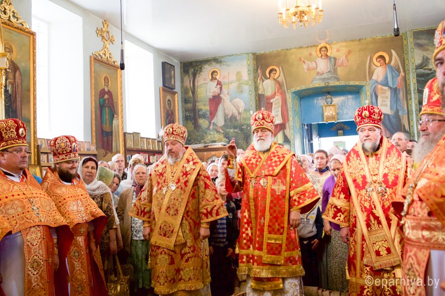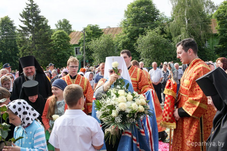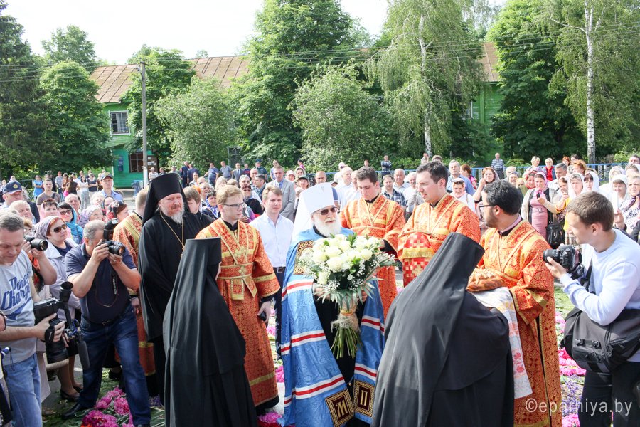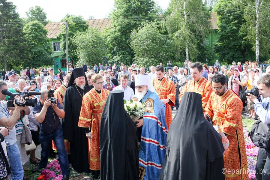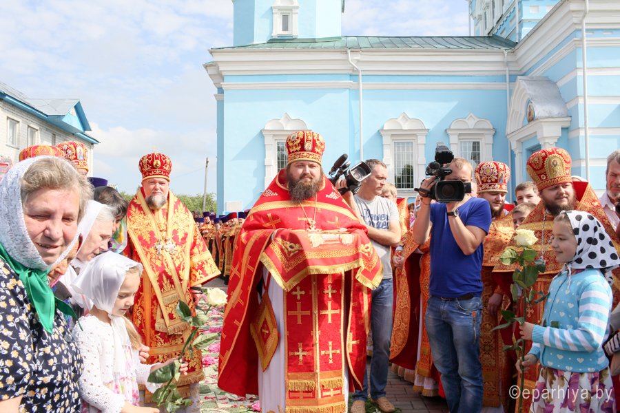 31 мая 2016 г. - особо-значимый день в земле Гомельской. Со многих городов и весей направляются паломники в а.г. Корма Добрушского района, где чествуется память св. прав. Иоанна Кормянского. И не только белорусы, но и жители стран ближнего зарубежья почитают Божьего угодника "увенчаем песнми солнце незаходимое" (из ст. Господи возвах), взывая ему в своих молитвах. В этот праздничный день в Свято-Покровском храме Свято-Иоанно-Кормянского женского монастыря возглавил Божественную литургию митрополит Минский и Заславский Павел, Патриарший Экзарх всея Беларуси в сослужении с епископом Гомельским и Жлобинским Стефаном и епископом Клинцовским и Трубчевским Владимиром. Архипастырям сослужили: управляющий делами Минской Экзархии архимандрит Сергий (Брич), секретарь Минской епархии протоиерей Андрей Волков, благочинный монастырей Гомельской епархии архимандрит Амвросий (Шевцов), насельник Свято-Никольского мужского монастыря архимандрит Савва (Мажуко) и духовенство епархий. Предварял богослужение многочисленный Крестный ход к могиле святого в д. Огородня, где были обретены его нетленные мощи. На границе Добрушского района Высокопреосвященнейшего Павла встречали Владыка Стефан и представители государственной власти. Обращаясь к присутствующим Владыка Павел поздравил всех с днем памяти св. прав. Иоанна Кормянского, преподав всем свое архипастырское благословение. Проповедь по запричастном стихе произнес клирик храма иконы Божией Матери «Иверская» г.Гомеля Андрей Шихалов. За богослужением молились: игуменья Свято-Иоанно-Кормянского монастыря Платонида, игуменья Свято-Успенского монастыря Иоанна и игуменья Свято-Тихвинского монастыря Вера с сестрами обителей. Богослужебные песнопения исполнил хор прихода храма Иверской иконы Божией Матери г.Гомеля под управлением Натальи Козловской. По окончании богослужения Владыка Павел возглавил Крестный ход с мощами святого праведного Иоанна Кормянского. По провозглашении многолетий владыка Стефан обратился со словами благодарности ко всем присутствующим: «Через житие святого праведного Иоанна Кормянского мы призваны к единству веры, мы должны помнить что Церковь Христова непоколебима. И сегодня на границе трех государств мы возносим свои молитвы, чтобы мы жили в мире, благополучии и единстве, и тому есть наше свидетельство в приобщении от общей чаши». Так же Владыка поблагодарил Патриаршего Экзарха за посещение земли Гомельской и за молитвы и архипастырское благословение. Преосвященный преподнес в дар Патриаршему Экзарху икону Тихвинской иконы Божией Матери. Со словами приветствия и пожелания многого лета обратился Клинцовский и Трубчевский Владимир: «Поздравляю всех с праздником и свидетельствую о единстве наших братских народов. Сердечно благодарю всех за то, что я разделяю радость нашего всенародного праздника.» В ответном слове Митрополит поблагодарил всех собравшихся за общую молитву и поздравил с праздником. |