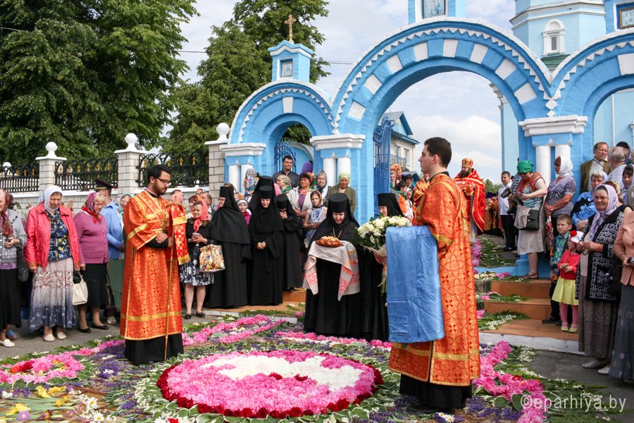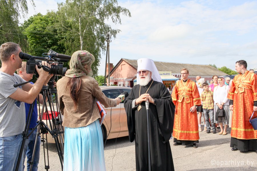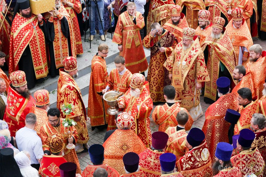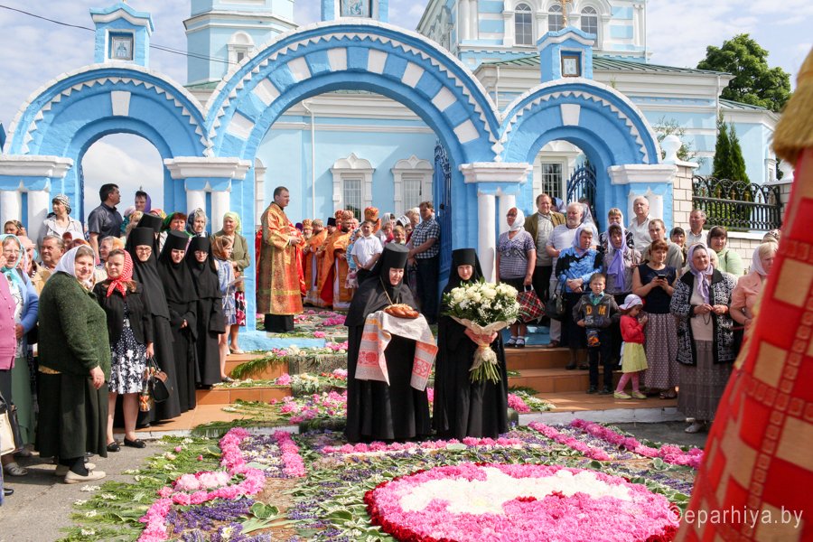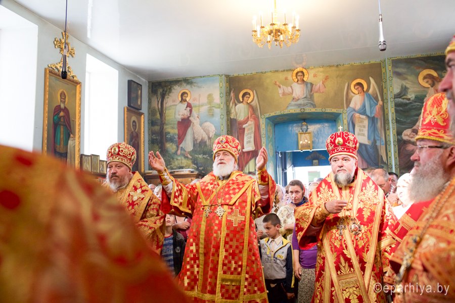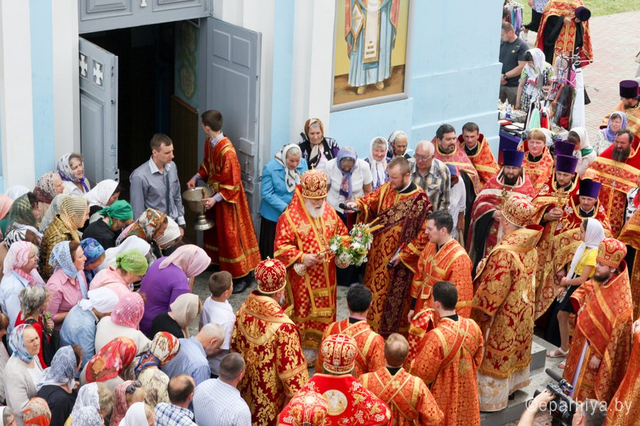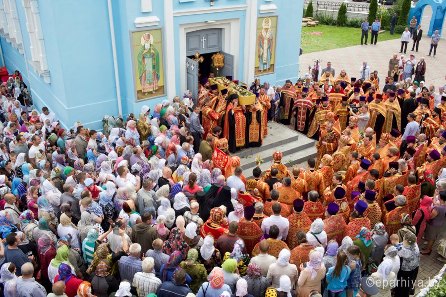 31 мая 2016 г. - особо-значимый день в земле Гомельской. Со многих городов и весей направляются паломники в а.г. Корма Добрушского района, где чествуется память св. прав. Иоанна Кормянского. И не только белорусы, но и жители стран ближнего зарубежья почитают Божьего угодника "увенчаем песнми солнце незаходимое" (из ст. Господи возвах), взывая ему в своих молитвах. В этот праздничный день в Свято-Покровском храме Свято-Иоанно-Кормянского женского монастыря возглавил Божественную литургию митрополит Минский и Заславский Павел, Патриарший Экзарх всея Беларуси в сослужении с епископом Гомельским и Жлобинским Стефаном и епископом Клинцовским и Трубчевским Владимиром. Архипастырям сослужили: управляющий делами Минской Экзархии архимандрит Сергий (Брич), секретарь Минской епархии протоиерей Андрей Волков, благочинный монастырей Гомельской епархии архимандрит Амвросий (Шевцов), насельник Свято-Никольского мужского монастыря архимандрит Савва (Мажуко) и духовенство епархий. Предварял богослужение многочисленный Крестный ход к могиле святого в д. Огородня, где были обретены его нетленные мощи. На границе Добрушского района Высокопреосвященнейшего Павла встречали Владыка Стефан и представители государственной власти. Обращаясь к присутствующим Владыка Павел поздравил всех с днем памяти св. прав. Иоанна Кормянского, преподав всем свое архипастырское благословение. Проповедь по запричастном стихе произнес клирик храма иконы Божией Матери «Иверская» г.Гомеля Андрей Шихалов. За богослужением молились: игуменья Свято-Иоанно-Кормянского монастыря Платонида, игуменья Свято-Успенского монастыря Иоанна и игуменья Свято-Тихвинского монастыря Вера с сестрами обителей. Богослужебные песнопения исполнил хор прихода храма Иверской иконы Божией Матери г.Гомеля под управлением Натальи Козловской. По окончании богослужения Владыка Павел возглавил Крестный ход с мощами святого праведного Иоанна Кормянского. По провозглашении многолетий владыка Стефан обратился со словами благодарности ко всем присутствующим: «Через житие святого праведного Иоанна Кормянского мы призваны к единству веры, мы должны помнить что Церковь Христова непоколебима. И сегодня на границе трех государств мы возносим свои молитвы, чтобы мы жили в мире, благополучии и единстве, и тому есть наше свидетельство в приобщении от общей чаши». Так же Владыка поблагодарил Патриаршего Экзарха за посещение земли Гомельской и за молитвы и архипастырское благословение. Преосвященный преподнес в дар Патриаршему Экзарху икону Тихвинской иконы Божией Матери. Со словами приветствия и пожелания многого лета обратился Клинцовский и Трубчевский Владимир: «Поздравляю всех с праздником и свидетельствую о единстве наших братских народов. Сердечно благодарю всех за то, что я разделяю радость нашего всенародного праздника.» В ответном слове Митрополит поблагодарил всех собравшихся за общую молитву и поздравил с праздником. |