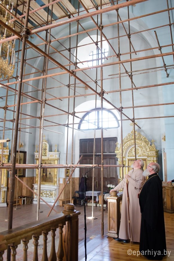3 июня 2016г., в ходе своего визита в Речицкий благочинный округ, Преосвященнейший Стефан совершил рабочую поездку в храм Успения Пресвятой Богородицы г. Речица. Настоятель храма протоиерей Алексий Пешко ознакомил Владыку с ходом реставрационно-восстановительных работ, проводимых в храме. |