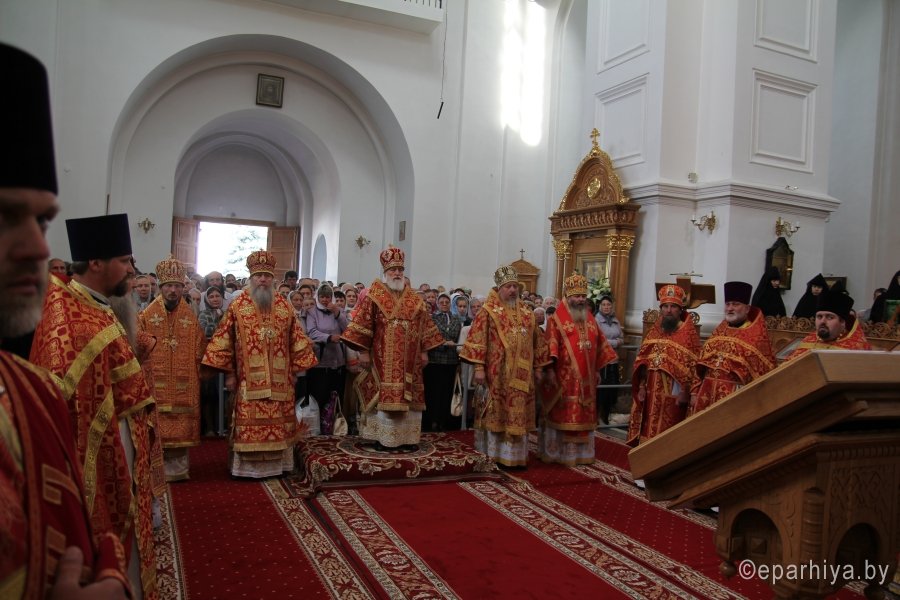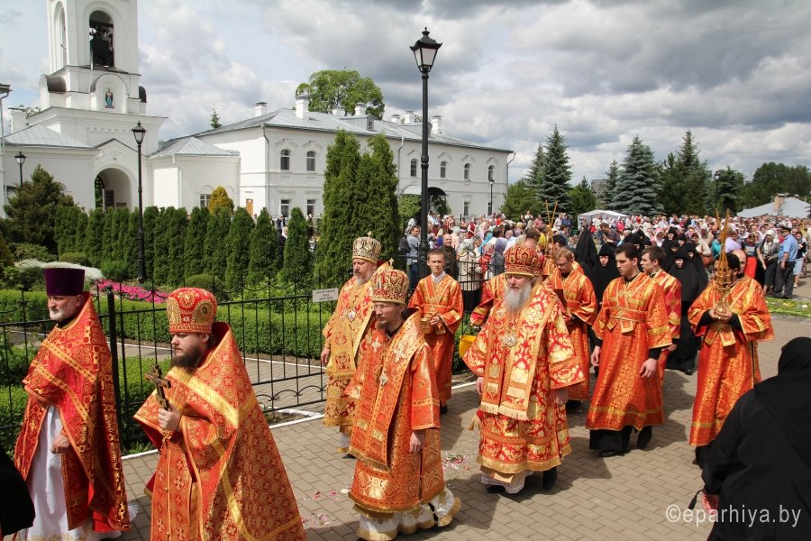 5 июня 2016г., в день памяти преподобной Евфросинии Полоцкой, Преосвященнейший Стефан сослужил митрополиту Минскому и Заславскому Павлу, Патриаршему Экзарху всея Беларуси за праздничной Божественной литургией в Крестовоздвиженском соборе Спасо-Евфросиниевского монастыря в г. Полоцке. Высокопреосвященному также сослужили: архиепископ Витебский и Оршанский Димитрий, епископ Молодечненский и Столбцовский Павел, епископ Борисовский и Марьиногорский Вениамин, а также священники Полоцкой и других епархий. По окончании богослужения состоялся большой крестный ход. Его участниками стали жители Полоцка и паломники. Главный крестный ход прошел по маршруту: Софийский собор — Спасо-Евфросиниевский монастырь. Во время движения к нему присоединялись малые крестные ходы из приходов Полоцкой епархии. |