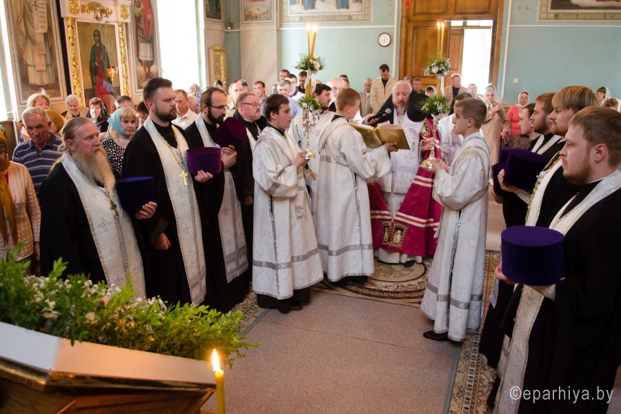 8 июня 2016г., в канун Вознесения Господня, Преосвященнейший Стефан возглавил всенощное бдение в Свято-Петро-Павловском кафедральном соборе г.Гомеля. Преосвященному сослужили: секретарь Гомельской епархии протоиерей Георгий Алампиев и духовенство собора. По окончании богослужения Владыка обратился к духовенству и прихожанам собора со словами Архипастырского назидания. |