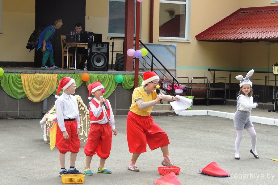 7 июня 2016 года в учреждении «Гомельский дом-интернат для детей-инвалидов и молодых инвалидов с особенностями психофизического развития» прошла театрализованная музыкально-игровая программа, приуроченная к Международному дню защиты детей, которую посетил клирик храма святого благоверного князя Александра Невского в г.Гомеле протоиерей Николай Мельников. Стараниями педагогов ГУО «Средняя школа № 15 г.Гомеля» и ребят первого класса, посещающих объединения по интересам «Ангел» и «Крепыш» была подготовлена сказка «Заюшкина избушка». Также на празднике с концертными номерами выступили воспитанники дома-интерната. Помимо ярких и красочных выступлений была проведена спартакиада, в которой артисты и зрители приняли активное участие. С удовольствием ребята выполняли непростые задания, активно участвовали в подвижных играх. В завершение мероприятия священник передал присутствующим сладкие подарки, а юные артисты вручили воспитанникам интерната сувениры, выполненные детьми ГУО «Специализированный ясли-сад для детей с особенностями психофизического развития № 169 г.Гомеля». |