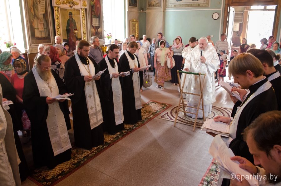 17 июня 2016г., в канун Троицкой родительской субботы, Преосвященейший Стефан возглавил вечернее богослужение и совершил Парастас (заупокойную утреню) в Свято-Петро-Павловском кафедральном соборе г.Гомеля. Преосвященному сослужили: секретарь Гомельской епархии протоиерей Георгий Алампиев и духовенство собора. По окончании богослужения Владыка обратился к духовенству и прихожанам собора со словами проповеди. |
