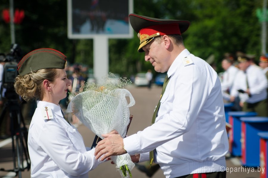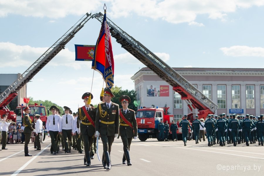 24 июня 2016 года на площади имени Ленина города Гомеля состоялся торжественный выпуск офицеров-спасателей. В торжественном мероприятии принял участие Преосвященнейший Стефан, представители руководства Гомельской области, города Гомеля, а также руководящие работники прочих учреждений и ведомств. С напутственным словом к выпускникам обратился Министр по чрезвычайным ситуациям Республики Беларусь генерал-лейтенант внутренней службы Ващенко Владимир Александрович. Он пожелал дальнейших успехов в продолжение службы, мирного неба над головой и как можно меньше причин для применения полученных навыков. В этом году дипломы о высшем образовании получили 80 человек, обучавшихся на инженерном факультете по очной форме обучения. Также дипломы получили 31 человек из числа обучающихся факультета заочного обучения. Преосвященный Стефан преподал выпускникам своё Архипастырское благословение, а и.о. ключаря Свято-Петро-Павловского кафедрального собора г. Гомеля иерей Алексей Сергеев и протоиерей Вадим Лапицкий под звон колоколов освятили личный состав института, окропив Святой водой. После окончания торжественной церемонии выпуска для гостей был представлен прощальный танец “Вальс” в исполнении выпускников и курсантов института. Мероприятие закончилось прохождением торжественным маршем личного состава института и показательными выступлениями взвода почетного караула. |