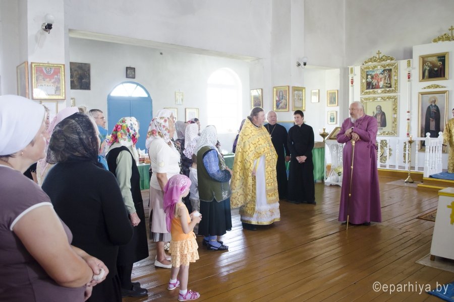 3 июля 2016г. Преосвященнейший Стефан в сопровождении благочинного Жлобинского округа протоиерея Василия Пилипенко совершил рабочий визит в храм Рождества Пресвятой Богородицы д.Солоное. Преосвященный пообщался с прихожанами и благословил их Святым Образом, а настоятель храма ознакомил Владыку с состоянием дел на приходе. |