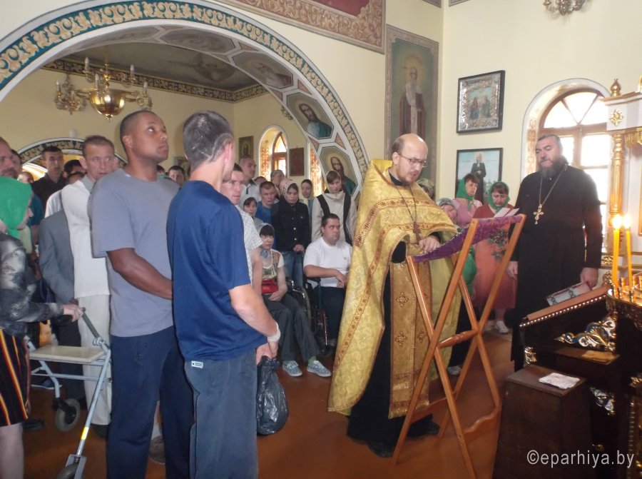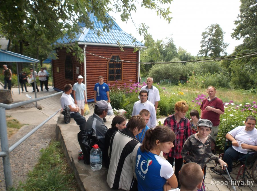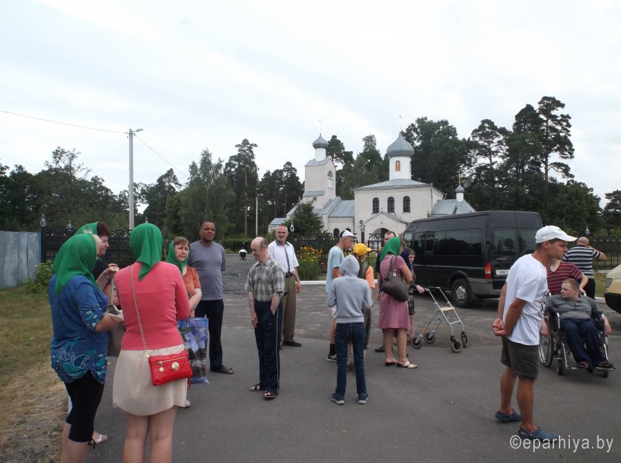 4 июля 2016 года состоялась паломническая поездка для 40 молодых инвалидов дома-интерната «Васильевка» в Храм св. вмч. Георгия Победоносца д. Белое Болото и к святым источникам в д.Черное. Поездка организована по благословению Преосвященнейшего Стефана, епископа Гомельского и Жлобинского, социальным отделом епархии совместно с администрацией и специалистами учреждения. Сопровождали в поездке молодых инвалидов председатель социального отдела-протоиерей Владимир Силенко и работники дома-интерната. Молебен о здравии возглавил настоятель прихода иерей Николай Барсуков. По окончании молебна около святого источника священник Николай у поклонного креста кратко рассказал об истории этого святого места. После чего многие желающие окунулись в святых источниках. Паломническая поездка закончилась совместным чаепитием. Молодые люди высказывали свою благодарность и признательность за поездку. Медицинский работник дома-интерната Людмила Васильевна Бражинская, которая работает в учреждении более 30 лет, сказала: «Эта поездка очень важна и нужна нашим подопечным. Они получают здесь исцеление и имеют возможность выехать за пределы учреждения в святое место, где живо общаться друг с другом». |