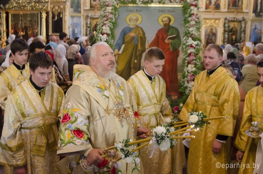 11 июля 2016г., в канун дня памяти святых первоверховных апостолов Петра и Павла, Преосвященный Стефан возглавил всенощное бдение в Свято-Петро-Павловском кафедральном соборе г.Гомеля. Преосвященному сослужили: секретарь Гомельской епархии протоиерей Георгий Алампиев, наместник Свято-Никольского мужского монастыря архимандрит Амвросий Шевцов, духовник Гомельской епархии протоиерей Стефан Гладыщук и духовенство епархии. По окончании богослужения Владыка обратился к духовенству и прихожанам собора со словами Архипастырского назидания. |