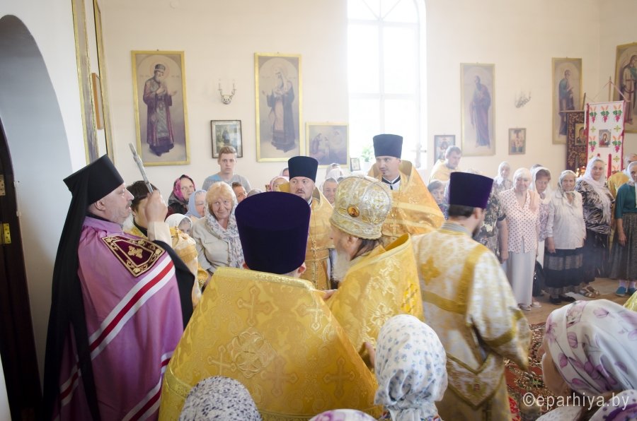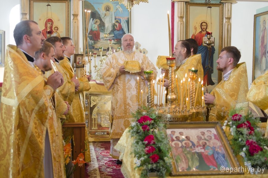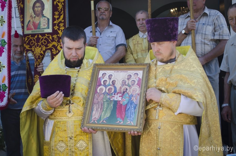 13 июля 2016г., в праздник Собора славных и всехвальных 12-ти апостолов, Преосвященный Стефан возглавил Божественную литургию в храме святых двенадцати апостолов д. Чирковичи. Преосвященному сослужили: благочинный Светлогорского округа протоиерей Александр Кисель и духовенство округа. По окончании богослужения Владыка возглавил Крестный ход, поздравил причастников с принятием Святых Христовых Таин, обратился к молящимся со словами Архипастырского назидания и благословил Святым Образом. |