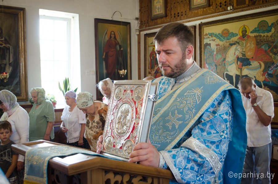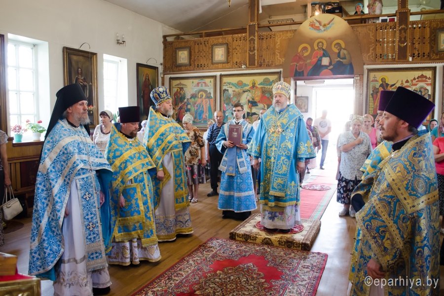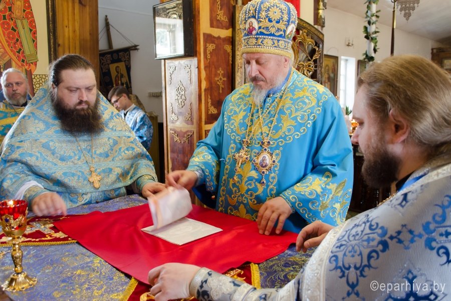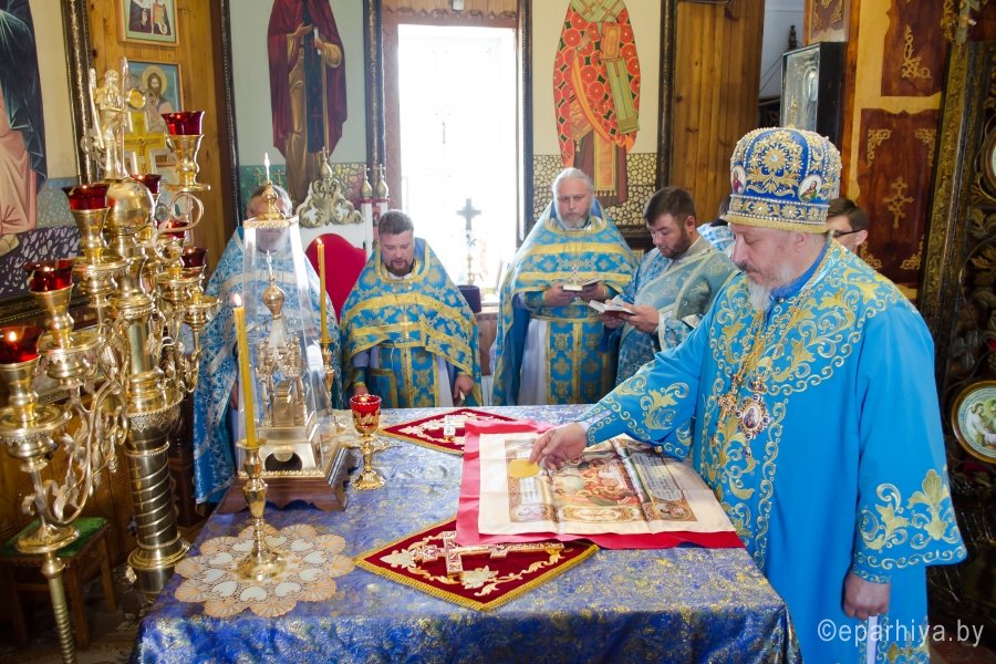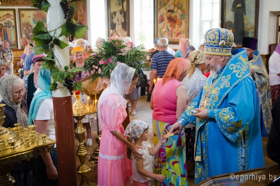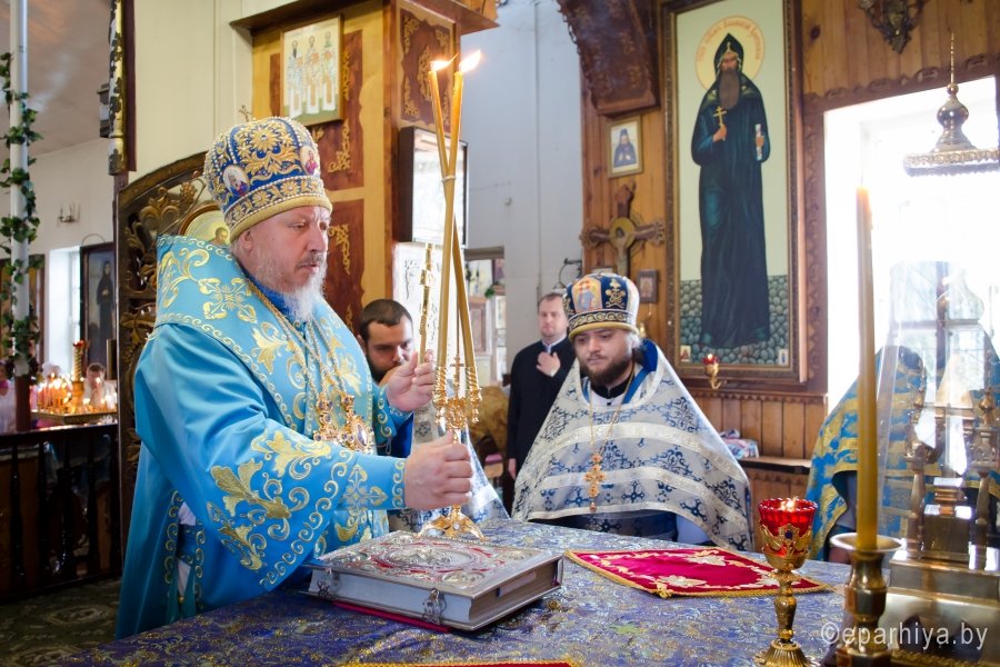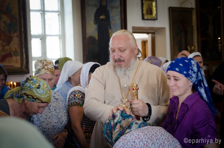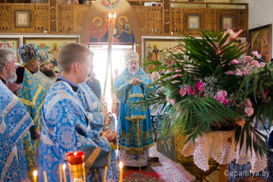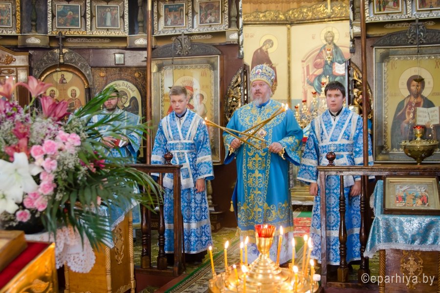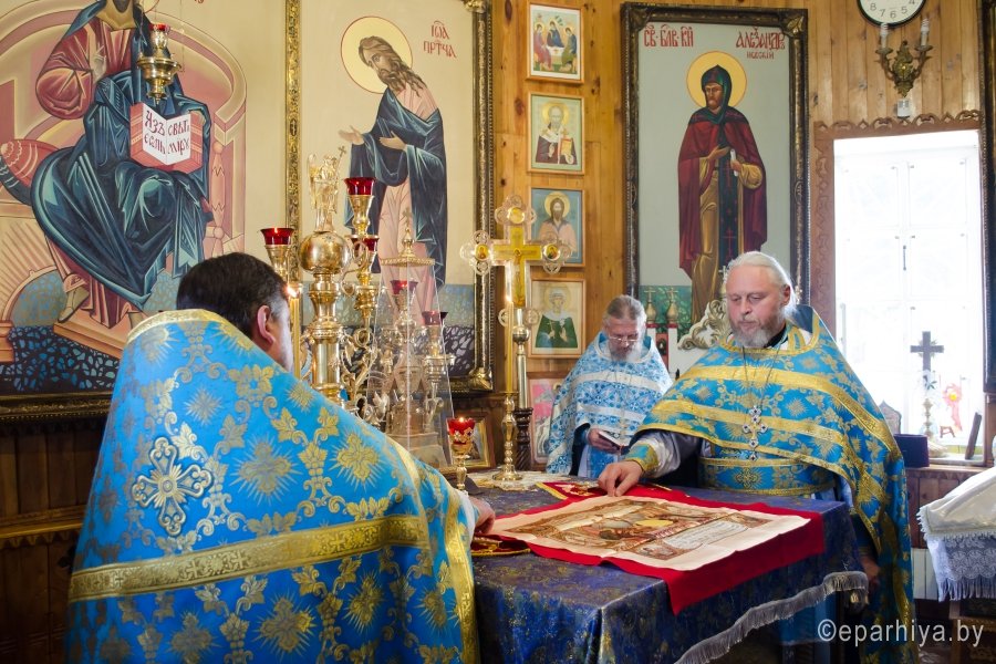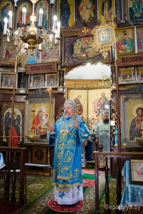 15 июля 2016г., в день памяти Ахтырской иконы Божией Матери , Преосвященный Стефан возглавил Божественную литургию в храме св.блг.кн. Александра Невского г.Рогачева. Преосвященному сослужили: наместник Свято-Никольского мужского монастыря г.Гомеля архимандрит Амвросий (Шевцов), благочинный Рогачевского округа протоиерей Алексей Смотрицкий и духовенство епархии. По окончании богослужения Владыка поздравил причастников с принятием Святых Христовых Таин и преподал всем архипастырское благословение. АХТЫРСКАЯ ИКОНА БОЖИЕЙ МАТЕРИ (Празд. 2 июля), чудотворная икона, явленная 2 июля 1739 г. в г. Ахтырка Харьковской губ. (ныне Сумская обл., Украина). Образ, от к-рого исходило сияние, был обретен свящ. Покровского храма Василием Даниловым в траве во время сенокоса. Икону перенесли в его дом, где совершились первые чудеса исцеления от лихорадки; через 3 года А. и. была поставлена в Покровском храме. Распространению известия о чудесах от иконы при высочайшем дворе послужило явление Божией Матери в тонком сне больной баронессе фон Вейдель, посетившей Ахтырку в 1748 г.: ей был указан день кончины и было обещано покровительство ее малолетним дочерям. В 1751 г. Святейший Синод постановил почитать А. и. как чудотворную. В 1768 г. на пожертвование императрицы Елизаветы Петровны на месте явления иконы был построен каменный Покровский собор (заложен в 1753; архит. Ф. Б. Растрелли), в к-ром икона находилась вплоть до ее похищения в 1903 г. во время отправления на реставрацию в С.-Петербург. С А. и., почитавшейся как целительница от мн. болезней, был сделан ряд списков, распространенных в основном на юге России, в Харьковской епархии. Чтимый список А. и. (XVIII-XIX вв.) находится в Москве, в главном приделе храма Воскресения Словущего на Арбате (ап. Филиппа) Иерусалимского подворья. А. и., именуемая «Самарская»,- главная святыня Самарского Пустынно-Николаевского муж. мон-ря. Ахтырская икона Божией Матери. Нач. XIX в. (ЦАК МДА) В 1975 г. появились сведения о том, что А. и. находится в Сан-Франциско (США), откуда в 1995 г. митр. Харьковский Никодим (Руснак) привез список с иконы и передал его в ахтырский Покровский собор. В связи с этим событием был возобновлен крестный ход на 3-й день после дня Св. Троицы со списком А. и. на место ахтырского во имя Св. Троицы мон-ря (с 1844 совершался в субботу Пятидесятницы, обратно икона переносилась в праздник Всех святых). 15 июня 1999 г. в Ахтырке прошли торжества по случаю 260-летия явления А. и. Иконография А. и. восходит к образцам итало-греч. искусства. Пресв. Богородица изображена со сложенными на груди в молении руками (в соответствии с католич. традицией), слева от нее - Иисус Христос, распятый на Голгофском кресте. Существуют варианты: Богородица в мафории (XIX в., ПГХГ), в короне с непокрытой головой (XIX в., ЦАК МДА), с непокрытой головой (кон. XVIII - сер. XIX в., ГММК). В честь А. и. были освящены храм в с. Чернетове Брянской обл. (построен в 1805 на средства помещицы А. Н. Надаржинской, родной тетки Ф. И. Тютчева), Ахтырский жен. мон-рь в с. Гусевка Волгоградской обл. (основан в 70-х гг. XIX в., местночтимый список с А. и. был спрятан в 20-х гг. XIX в.), храм в дер. Ахтырка Сергиево-Посадского р-на Московской обл. (построен в 1825 архит. А. С. Кутеповым в бывш. имении князей Трубецких, возвращен РПЦ в 1991), часовня при республиканской больнице в Петрозаводске (освящена в 2000). По материалам http://www.pravenc.ru |