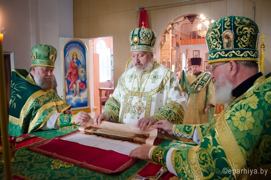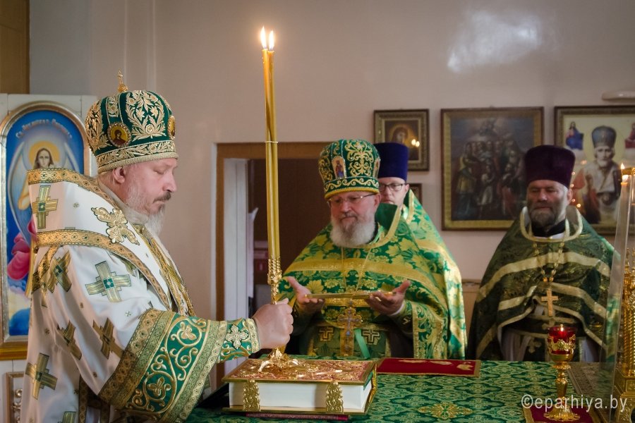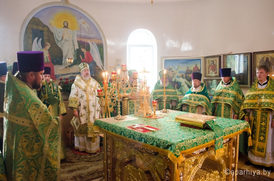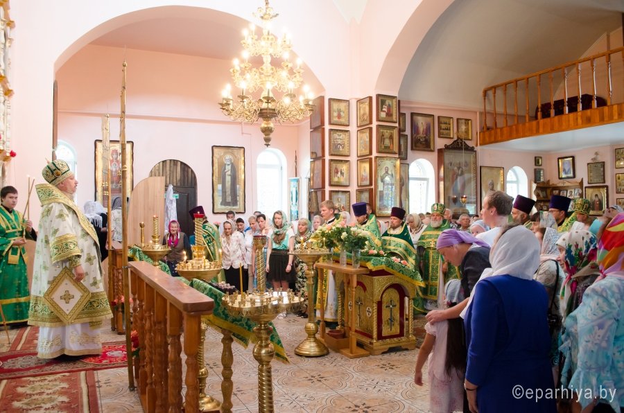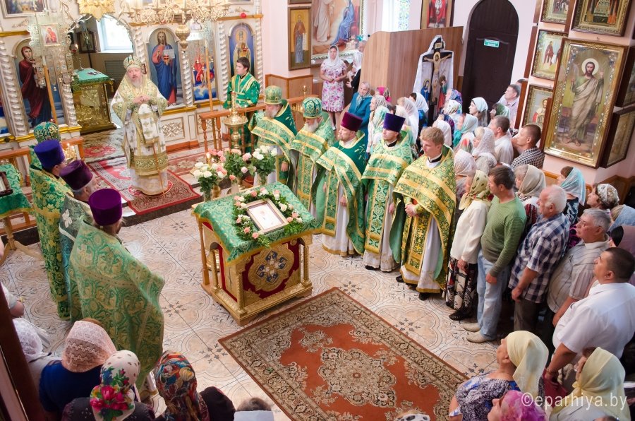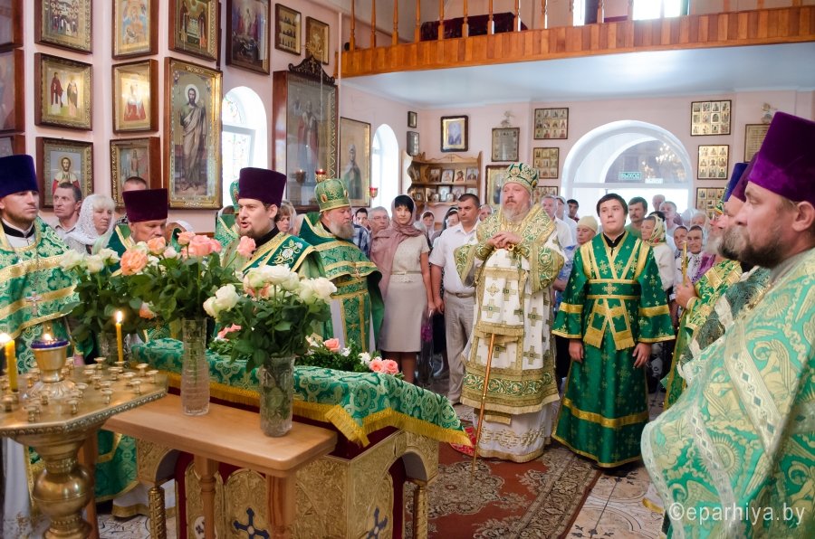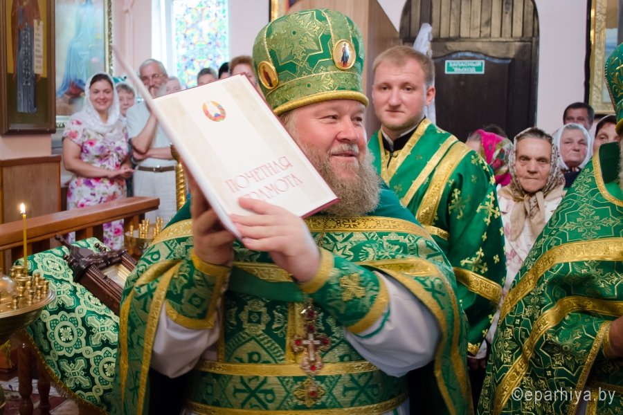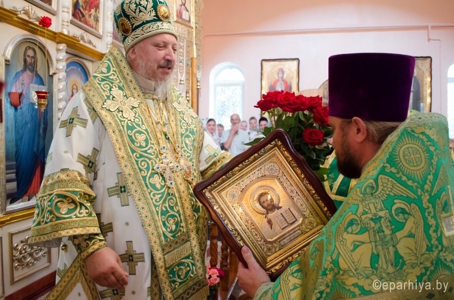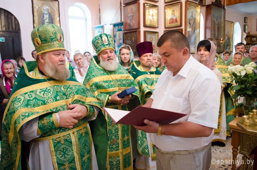 18 июля 2016г., в день памяти прп. Сергия Радонежского, Преосвященный Стефан возглавил Божественную литургию в храме свт. Николая Чудотворца г.Буда-Кошелево. Преосвященному сослужили: благочинный Буда-Кошелевского округа протоиерей Сергий Пешко, благочинный Речицкого округа протоиерей Алексей Пешко, настоятель Спасо-Преображенского храма с. Хотислав, Брестская епархия, протоиерей Петр Пешко и духовенство храма и благочинного округа. По окончании богослужения Владыка поздравил протоиерея Сергия Пешко с 50-летием и преподнес в дар цветы и наперсный крест с украшениями, а настоятеля храма Пресвятой Богородицы д.Глазовка протоиерея Сергия Коржовника поздравил с Днем Ангела и преподнес в дар цветы и Святой Образ Спасителя. Прихожане, активно потрудившиеся в благоустройстве храма свт. Николая Чудотворца г. Буда-Кошелево были удостоены епархиальными медалями и Архиерейскими грамотами. Председатель Буда-Кошелевского районного исполнительного комитета Александр Викторович Григоренко и Председатель районного Совета депутатов Алексина Елена Ивановна вручили Почетную грамоту благочинному Буда-Кошелевского округа протоиерею Сергию Пешко. |