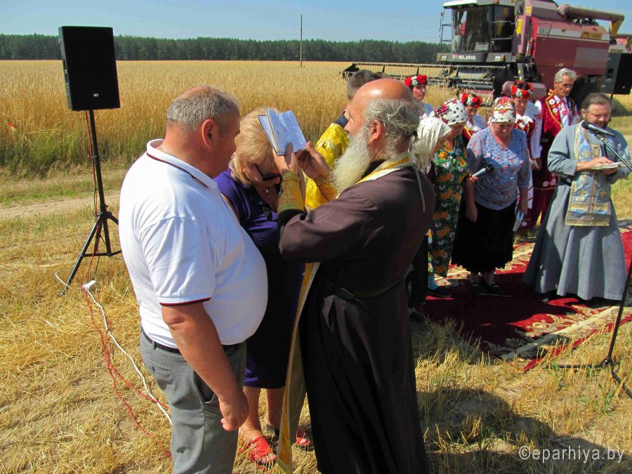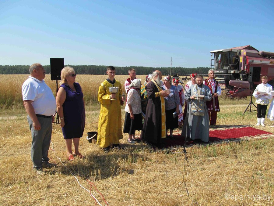 В Добрушском районе отмечено начало уборочной страды. Местом проведения «Зажинок» в 2016 году выбрано поле ОАО “Утевское” — знак признания высоких трудовых достижений местных тружеников на хлебной ниве. Директор сельхозпредприятия Александр Дробышев поблагодарил руководство района за оказанную честь. Настоятели храмов Архангела Михаила и Александра Невского иеромонах Венедикт и протоиерей Петр Бусь, клирики Добрушского благочиния, перед началом жатвы совершили молебен ко Господу нашему Иисусу Христу, преподали священническое благословение на плодотворный труд и щедрый урожай, окропили святой водой технику и самих хлеборобов, поздравили их с самым важным событием года – жатвой, пожелали доброго здоровья и хороших результатов в работе. Почетное право сжать первый сноп нового урожая было предоставлено Наталье Марфушкиной, хозяйке семьи заслуженной династии хлеборобов. Красивыми выверенными движениями женщина жала серпом колосья и клала их на стерню. Через минуту красивый сноп зерна она вручила главе района Ольге Федоровне Мохоревой… Наконец раздался гул комбайнов – мощные машины двинулись с места, жатки стали захватывать зрелые колосья. С Божьего благословения в районе началась обычная, но такая ответственная работа. |