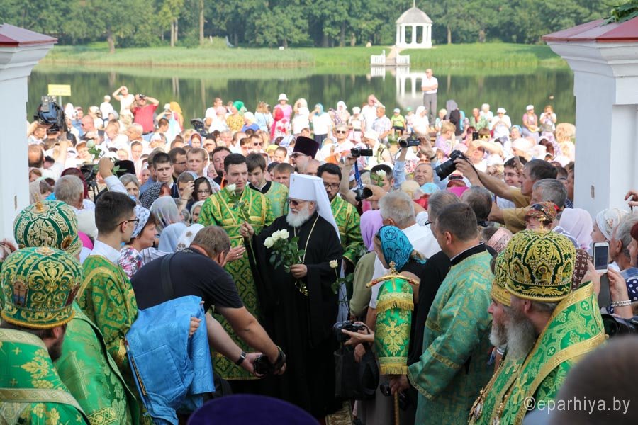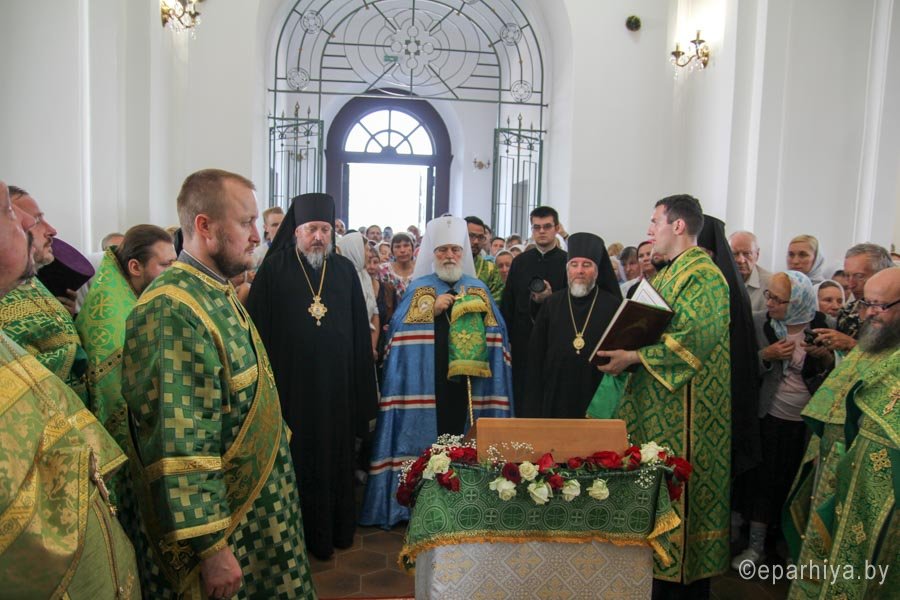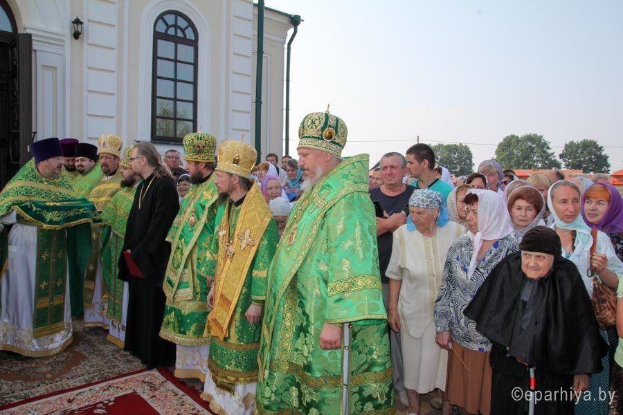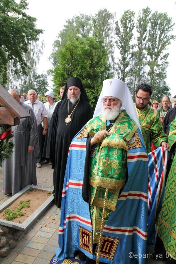 26 июля 2016 года, во вторник 6-й седмицы по Пятидесятнице, в Молодечненской епархии совершалось молитвенное торжество, посвященное пятидесятилетию со дня кончины и десятилетию со дня прославления в лике местночтимых святых блаженной Валентины Минской. Преосвященный Стефан сослужил за Божественной литургией митрополиту Минскому и Заславскому Павлу, Патриаршему Экзарху всея Беларуси в Никольском храме деревни Станьково Дзержинского района Минской области. Патриаршему Экзарху также сослужили епископы: Туровской и Мозырский Леонид, Борисовский и Марьиногорский Вениамин, Молодечненский и Столбцовский Павел и Лидский и Сморгонский Порфирий. Архипастырям сослужили: управляющий делами Минской Экзархии архимандрит Сергий (Брич); секретарь Минской епархии протоиерей Андрей Волков и духовенство Молодечненской епархии. За богослужением присутствовали и молились: председатель Дзержинского районного исполнительного комитета Николай Иванович Артюшкевич и другие официальные лица. Богослужебные песнопения исполнил архиерейский хор Молодечненской епархии под управлением Виктории Лущик. Проповедь перед Причастием произнес иеромонах Александр (Шмырко). По отпусте Богослужения Патриарший Экзарх, сослужащие архипастыри и священнослужители совершили славление празднику, а затем епископ Молодечненский и Столбцовский Павел поздравил Патриаршего Экзарха с праздником и поблагодарил за соборную службу. С приветственным словом к собравшимся обратился глава Дзержинского райисполкома Николай Иванович Артюшкевич. Митрополит Павел поздравил архипастырей, духовенство и прихожан с праздником и обратился ко всем присутствующим со словом назидания. На молитвенную память прихожанам были розданы иконки блаженной Валентины Минской. По окончании службы митрополит Павел совершил молебен на месте упокоения блаженной Валентины Минской. На молебне присутствовали архиереи, духовенство Молодечненской епархии и многочисленные паломники. Church.by |