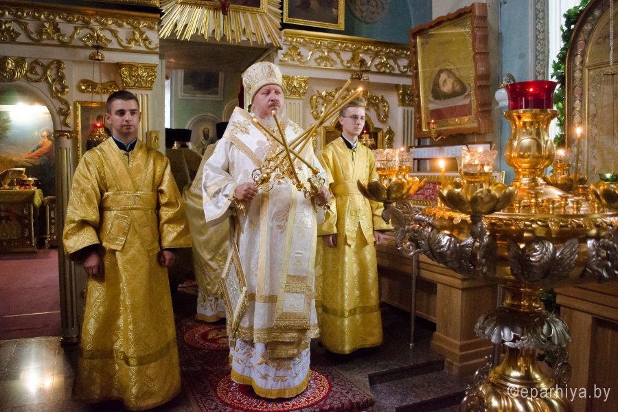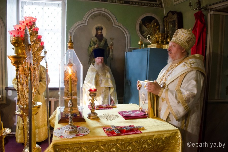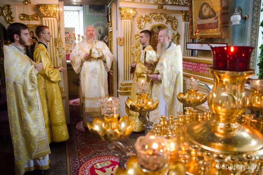 29 июля 2016г., в пятницу 6-й седмицы по Пятидесятнице, Преосвященнейший Стефан, в сослужении духовенства Свято-Петро-Павловского кафедрального собора г.Гомеля, возглавил Божественную литургию в Казанском приделе соборного храма г.Гомеля. По окончании богослужения Владыка обратился к молящимся со словом назидания, пожелав всем помощи Божией, поздравил причастников с принятием Святых Христовых Таин и преподал верующим архипастырское благословение. |