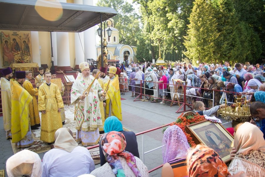 7 августа 2016г., в Недел. 7-ю по Пятидесятнице, Успение прав. Анны, матери Пресвятой Богородицы, Преосвященнейший Стефан возглавил Божественную Литургию в кафедральном Свято-Петро-Павловском соборе г.Гомеля. Преосвященному сослужили: секретарь Гомельской епархии протоиерей Георгий Алампиев и духовенство собора. По окончании богослужения Владыка совершил молебное пение перед ковчегом с мощами святого великомученика Пантелеимона, который до 12 августа 2016г. доступен для поклонения верующих в Свято-Петро-Павловском кафедральном соборе г.Гомеля и обратился к молящимся со словами Архипастырского назидания. |