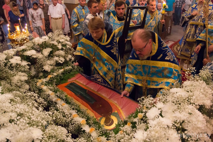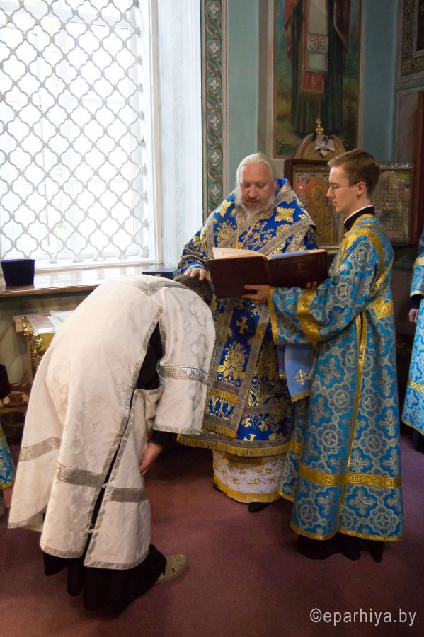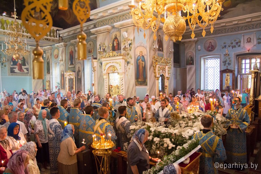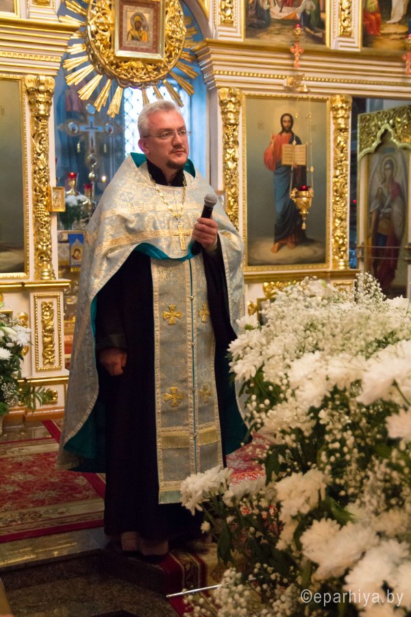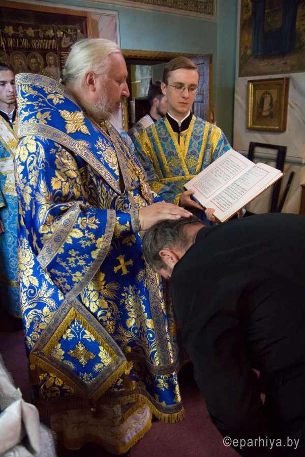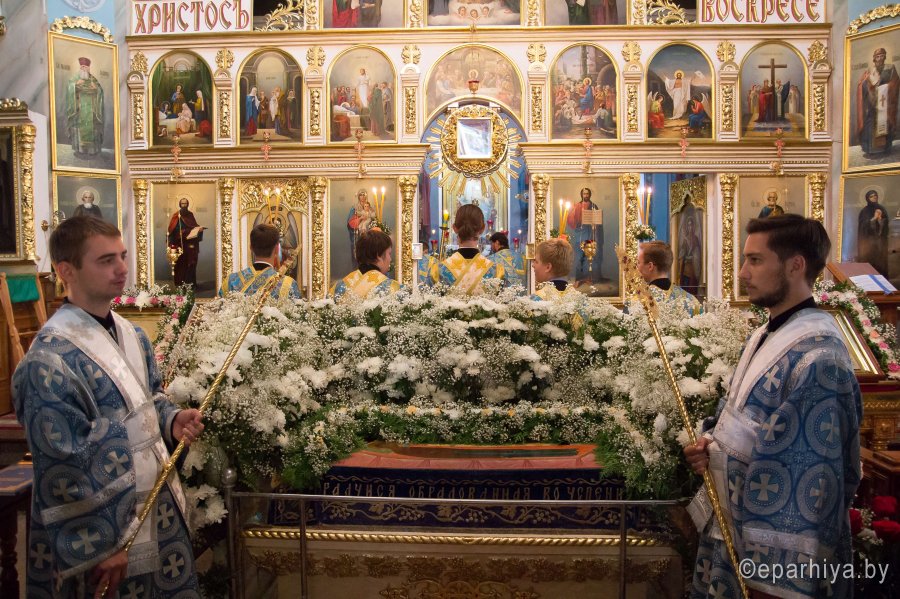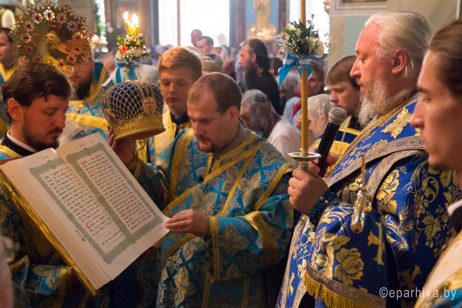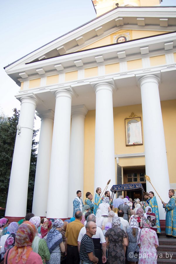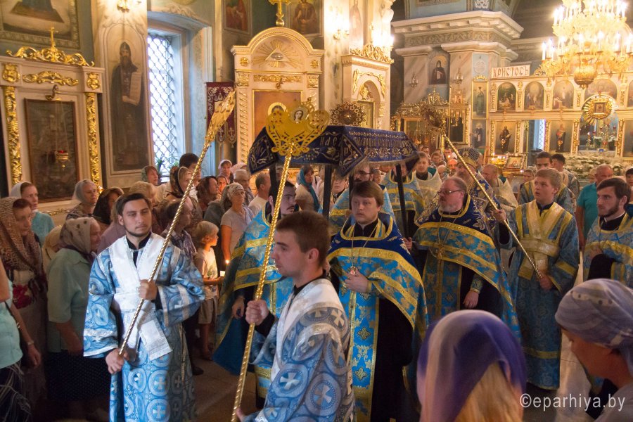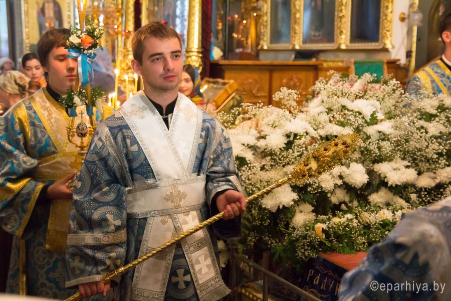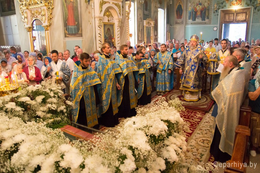 28 августа 2016 года, в праздник Успения Пресвятой Владычицы нашей Богородицы и Приснодевы Марии, Преосвященнейший Стефан возглавил вечернее богослужение с чином отпевания Плащаницы Пресвятой Богородицы в Свято-Петро-Павловском кафедральном соборе г.Гомеля. Преосвященнейшему сослужили: секретарь Гомельской епархии протоиерей Георгий Алампиев и духовенство епархии. Во время богослужения Владыка совершил чин поставления (хиротесию) во чтеца и иподиакона Терешкова Василия, учащегося IV курса Витебской Духовной Семинарии. После великого славословия состоялся крестный ход с плащаницей с изображением Успения Пресвятой Богородицы, вслед за которым с молитвенными песнопениями шествовали прихожане. По завершении богослужения Преосвященный поздравил прихожан с праздником, поблагодарил за совместную молитву и преподал всем свое Архипастырское благословение. Проповедь за богослужением произнес иерей Максим Плисков. |