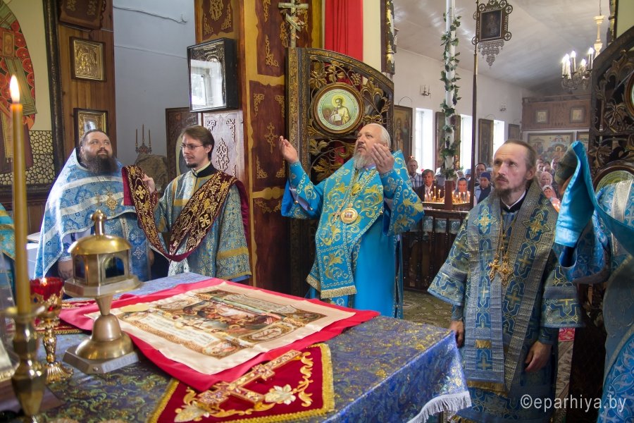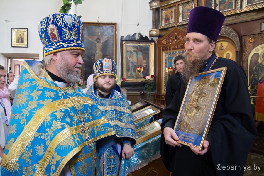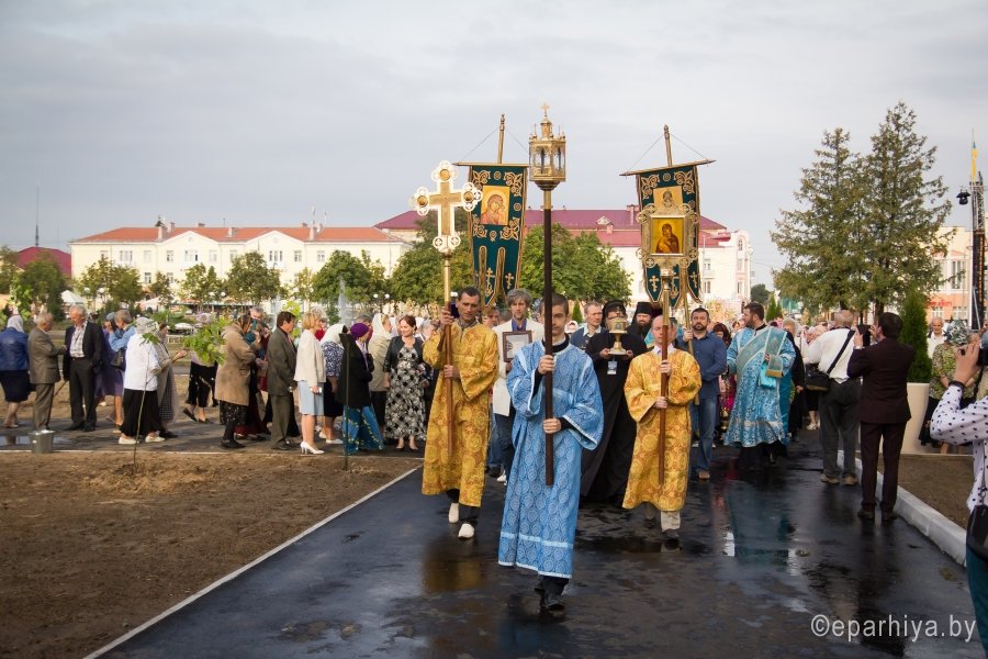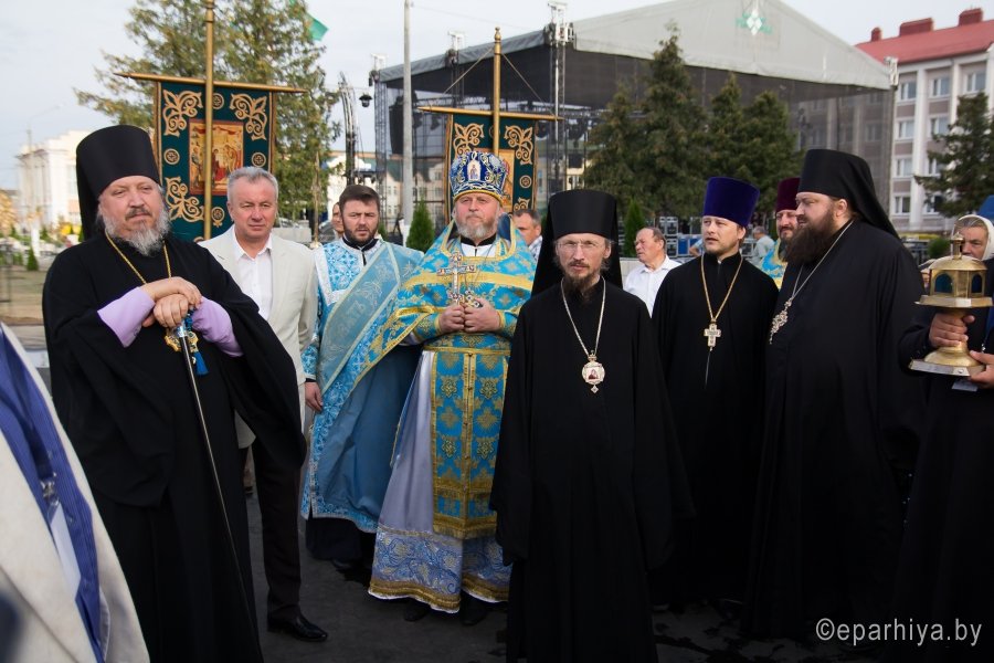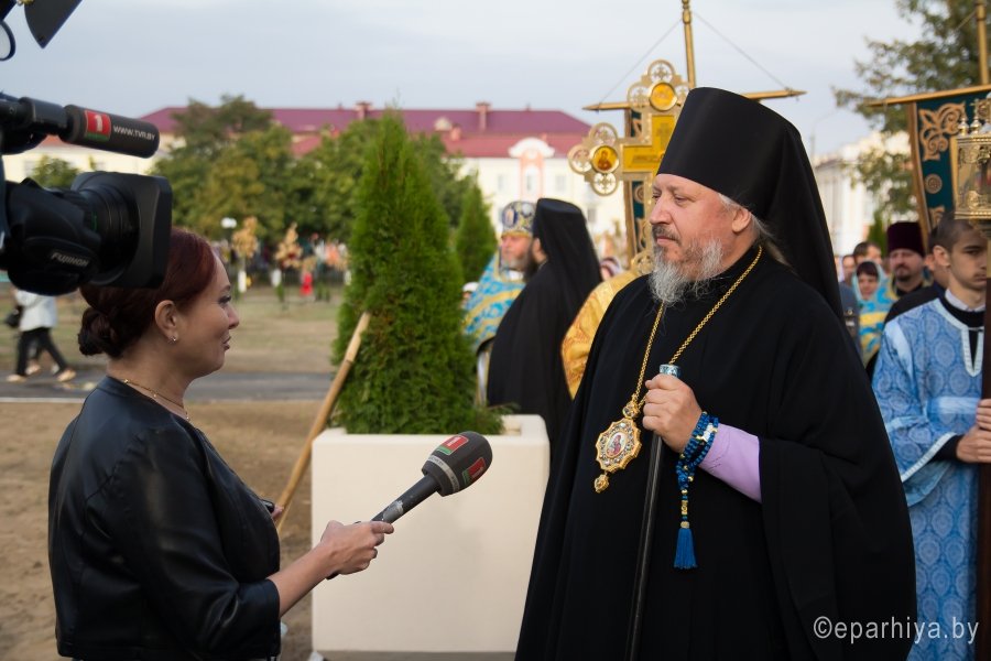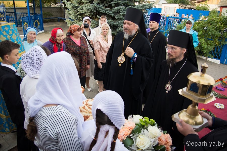 4 сентября 2016г. епископ Гомельский и Жлобинский Стефан и епископ Борисовский и Марьиногорский Вениамин совершили Божественную литургию в храме святого благоверного князя Александра Невского г.Рогачева. Преосвященным сослужили: секретарь Гомельской епархии протоиерей Георгий Алампиев, благочинный монастырей Гомельской епархии архимандрит Амвросий (Шевцов), насельник Свято-Никольского мужского монастыря архимандрит Савва (Мажуко), благочинный Рогачевского округа и настоятель храма протоиерей Алексей Смотрицкий и духовник экспедиции. По окончании литургии Преосвященные владыки совершили молебен о сохранении творения Божия, который согласно решению Священного Синода от 13 июля 2015 года (журнал № 41), является ежегодным Днем молитвы о Божием творении в первый воскресный день сентября. По завершении богослужения гости преподнесли в храм список иконы «Покрова Пресвятой Богородицы». С архипастырским словом обратился Преосвященный Стефан епископ Гомельский и Жлобинский, который поблагодарил Преосвященного Вениамина за труды, отметив важность возглавляемой экспедиции. Предварял литургию крестный ход Международной научно-просветительской экспедиции «Дороги до святыней» возглавляемый архипастырями. Традиционно участники международной экспедиции с Благодатным огнем от Гроба Господня, совершили посадку «Сада молитвы» в г.Рогачеве. Фото Валентины Тимофеевой по ссылке. Фото Роман Карпенко: |