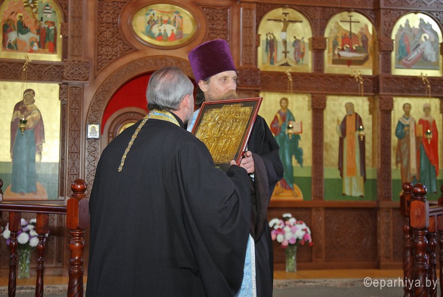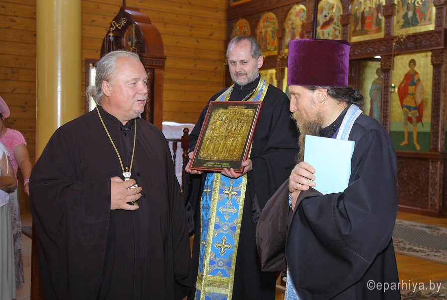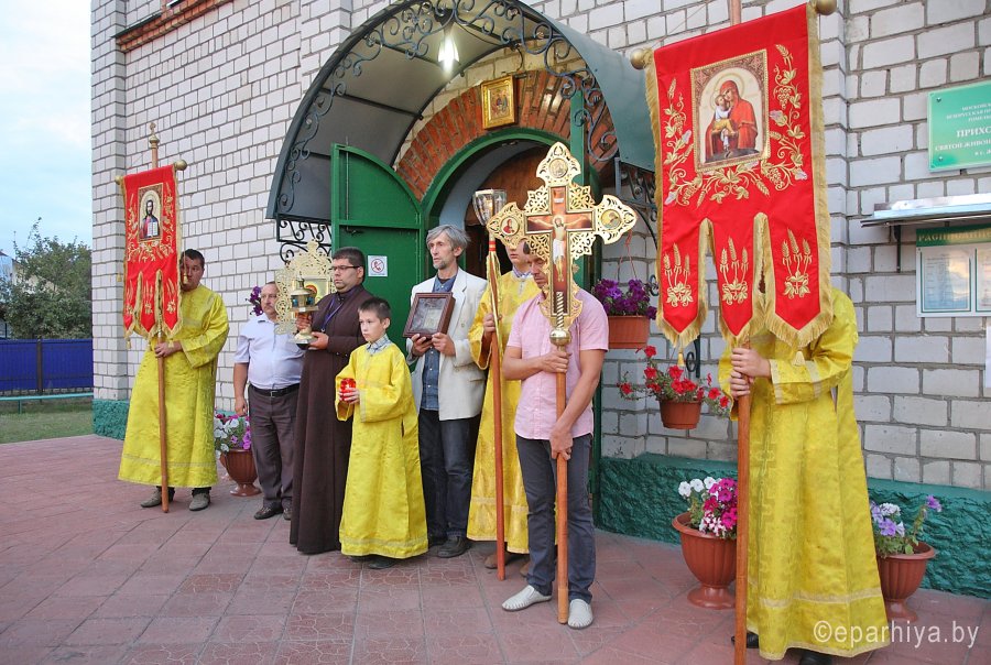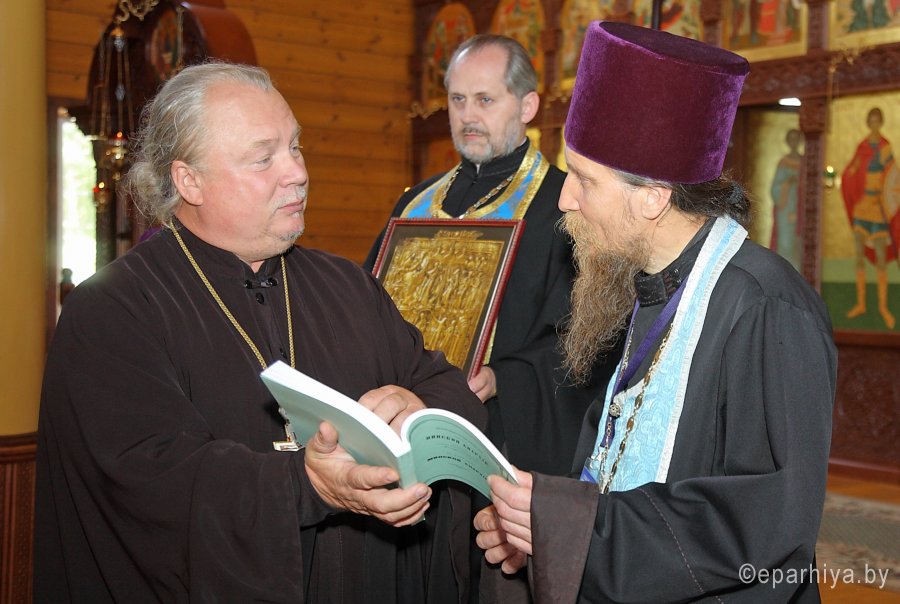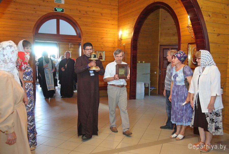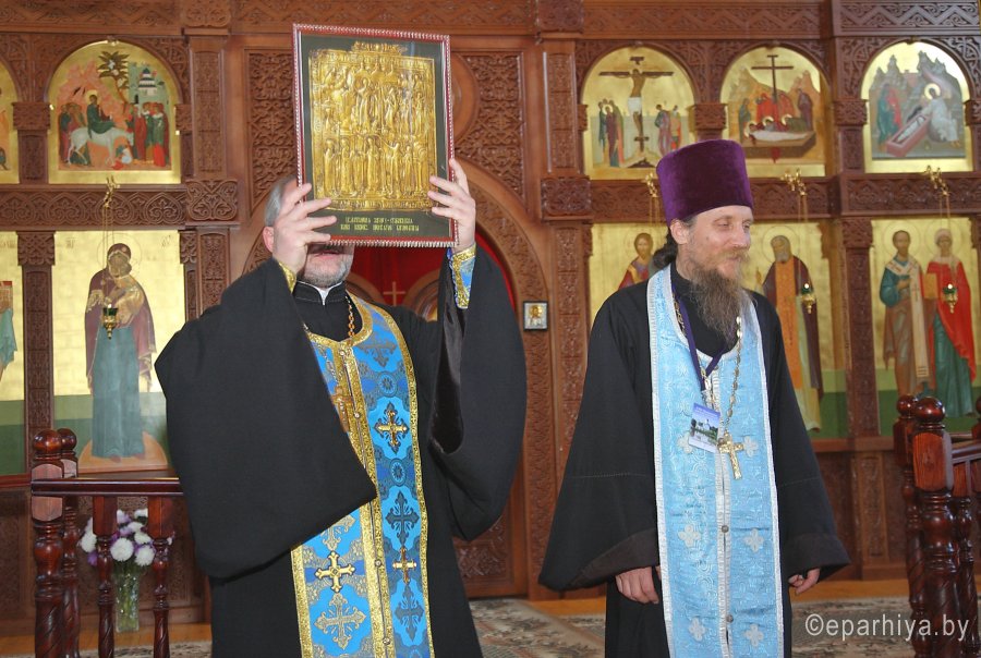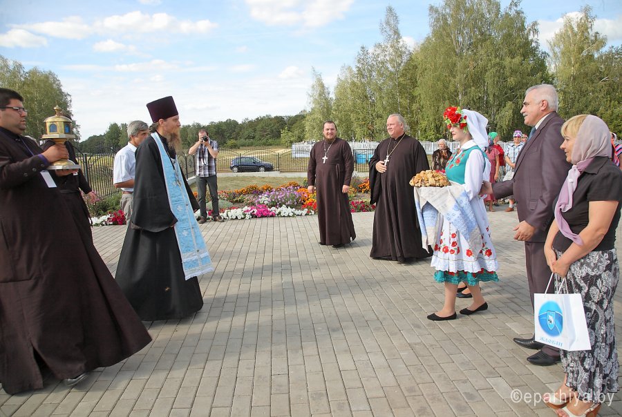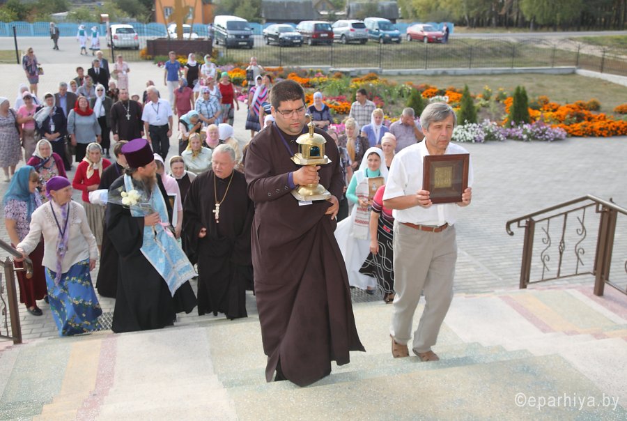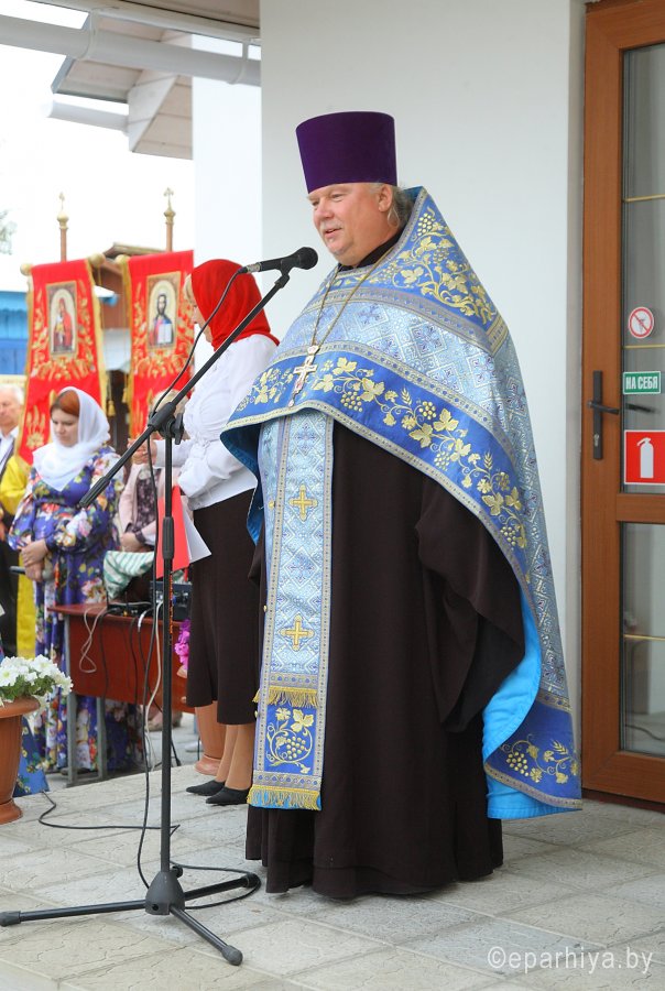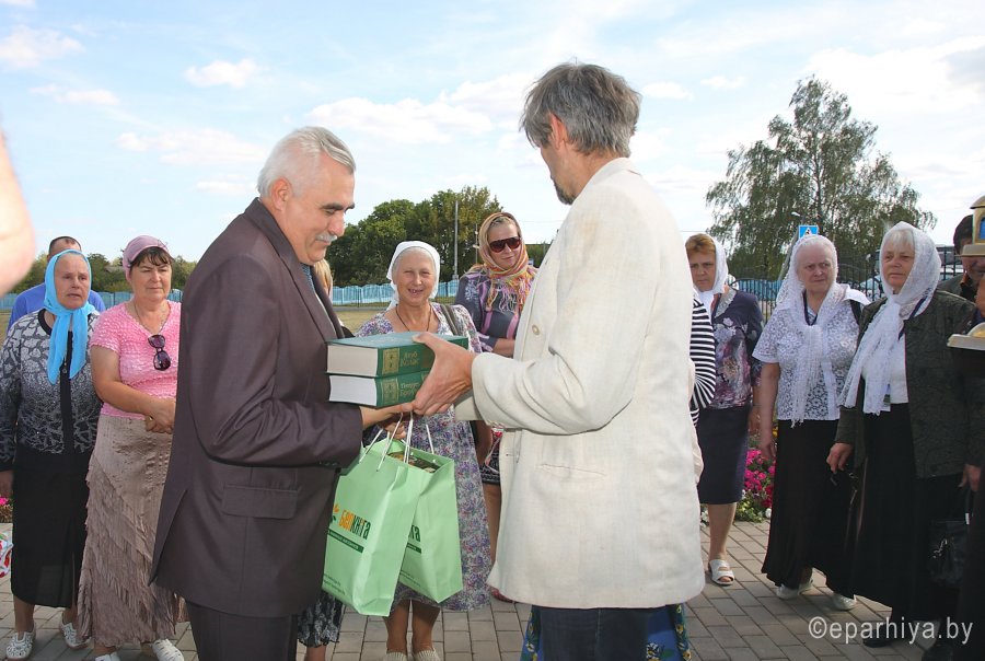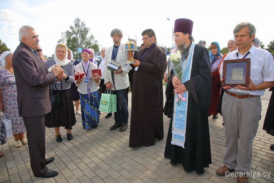 3 сентября 2016г. в Жлобинском благочинном округе с крестным ходом прошли участники Международной научно-просветительской экспедиции «Дорога к святыням», которую возглавляет руководитель Синодального отдела религиозного образования и катехизации Преосвященный Вениамин, епископ Борисовский и Марьиногорский. Мероприятия начались с торжественной встречи у храма преподобного Серафима Саровского на Рабочем поселке города Жлобина. Делегацию встречали: заместитель председателя районного исполнительного комитета Костейков В. А., начальник отдела идеологии, культуры и по делам молодежи Нехай В. В., благочинный Жлобинского округа протоиерей Василий Пилипенко, настоятель храма святителя Василия Великого иерей Вячеслав Рябица и настоятель храма преподобного Серафима Саровского протоиерей Леонид Михайловский. В храме преподобного Серафима Саровского духовенство, жители поселка, участники просветительской экспедицией, отслужили молебен. По окончании молебна со словами проповеди о духовных ценностях и культуре нашего народа, выступил протоиерей Сергий Гордун - профессор Минской духовной академии, заведующий кафедрой библейских и церковно-исторических дисциплин института теологии имени святых Мефодия и Кирилла Белорусского государственного университета. В завершении своих слов протоиерей Сергей Гордун вручил список иконы «Покрова Пресвятой Богородицы» и памятные книги настоятелю храма иерею Леониду. Далее участники научно-просветительской экспедиции разделились на мобильные группы, которые разъехались по площадкам города с конференцией «Дорога до святыни». Гостеприимно распахнула двери центральная библиотека им. Крупской, воскресные школы приходов преподобного Серафима Саровского и святителя Василия Великого. Школьный музей православной культуры в ГУО № 12, ГУО № 10, 11, 13, «Территориальный центр социального обслуживания населения», отделение медицинской реабилитации «Хоспис» ТМО ЦРБ. Участники Международной научно-просветительской экспедиции, духовенство благочиния, многочисленные прихожане приняли участие в молебне на территории прихода храма Василия Великого. С архипастырским словом к собравшимся обратился Преосвященный Вениамин епископ Борисовский и Марьиногорский. Благочинный Жлобинского округа протоиерей Василий Пилипенко и писательница, директор экспедиции Загорская Н. С. поздравили с праздником Днем белорусской письменности. От духовно-просветительской экспедиции настоятелю храма иерею Вячеславу Рябице преподнесли список иконы «Покрова Пресвятой Богородицы». Под колокольный перезвон с песнопениями крестный ход к собору Святой Живоначальной Троицы, возглавил Преосвященный Вениамин епископ Борисовский и Марьиногорский Традиционно участники крестного хода совершили закладку «Сада молитвы» на территории храма. |