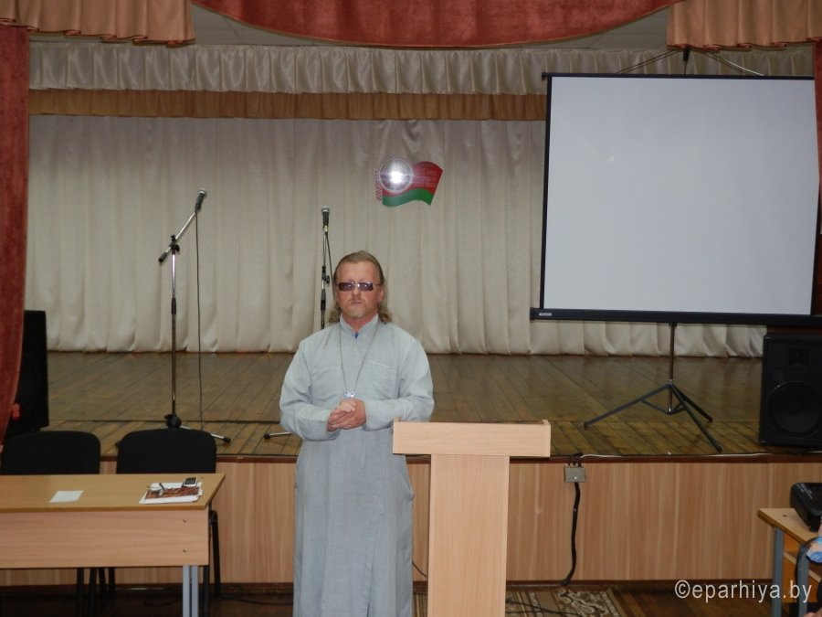 По благословению Преосвященного Стефана на педагогическом совещании, посвященном началу учебного года с напутственным словом выступил настоятель храма святых апостолов Петра и Павла г. Светлогорска протоиерей Владимир Семёнов. В актовом зале ГУО «Средней школы №10 г. Светлогорска», администрация школы обсуждала вопросы нововведений в новом учебном году и подведении итогов совместной работы со священнослужителями Белоруской Православной Церкви. В начале своей речи священник всех поприветствовал с началом учебного года. – Нелегкий труд быть педагогом в современном мире, - сказал протоиерей Владимир, – Когда современная молодежь в ногу со временем уходит в мир компьютерных технологий, заменяет привычное общение людей, общением в соцсетях, постепенно теряет духовность, семейные традиции и воспитание уходит на задний план. Суета и постоянные мирские заботы захватывают нас, что нет времени вспомнить о Боге, помолиться, сходить в церковь. Дети становятся более агрессивными, не хотят учится, и часто ссорятся с родителями.Это достаточно серьезная проблема. Очень отрадно, когда мы совместными усилиями проводим работу по духовному воспитанию наших ребят. Мероприятии, конкурсы, встречи, экскурсии по храмам и результат - это радость и улыбки наших учеников, посещение богослужений, полученные призовые места на конкурсах. В завершении своих слов, священник вручил подарок преподавателю белорусского языка и литературы, заведующей кабинетом по «Основам православной культуры», средней школы №10 г.Светлогорска, руководителю отдела образования и катехизации в Светлогорском благочинии Калитской Инне Владимировне, занявшей 3 место в областном конкурсе православных кабинетов. Всем присутствующим пожелал успехов в новом учебном году, и поблагодарил за работу, которая ведется в духовном просвещении среди школьников. Божией помощи. |