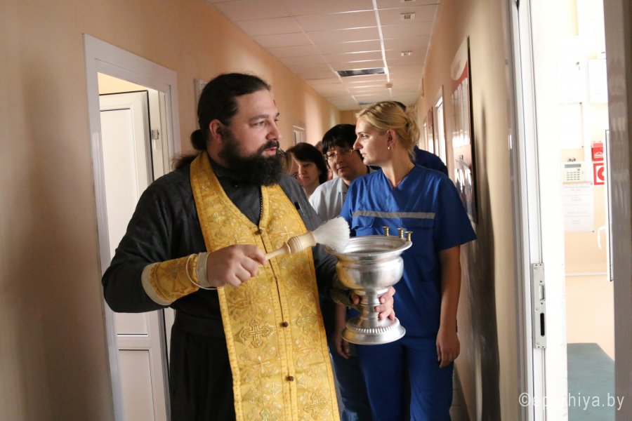 12 сентября 2016 г. клирик храма святого Архангела Михаила в г. Гомеле иерей Максим Новик совершил чин освящения помещений и машин Гомельской городской станции скорой медицинской помощи (подстанция №2). Обращаясь к персоналу станции скорой помощи, священнослужитель пожелал всем крепости духа и сил на служении народу. А также преподнес в дар икону святого вмч. Пантелеимона. |