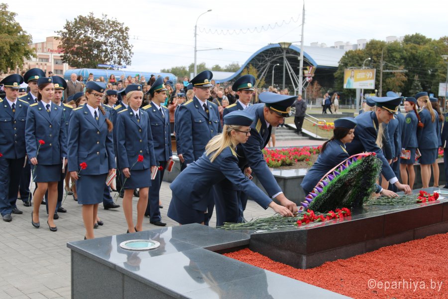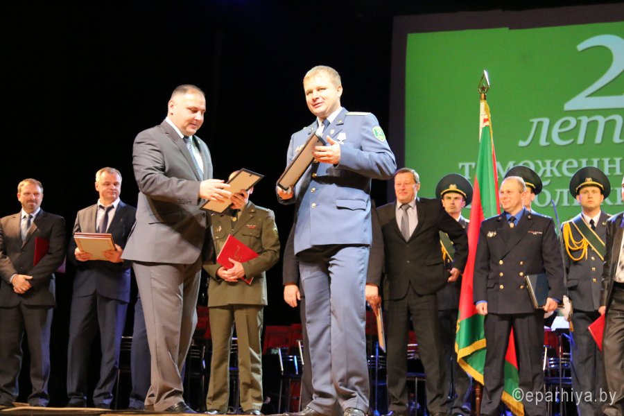 20 сентября у мемориального комплекса «Аллея героев» состоялось торжественное мероприятие принятие Присяги должностными лицами Гомельской таможни, приуроченное к 25-летию таможенной службы Республики Беларусь. На церемонии присутствовали руководство таможни, начальники структурных подразделений, ветераны таможенной службы, а также представители духовенства. После торжественного прохождения знаменной группы вдоль строя собравшихся поприветствовал начальник Гомельской таможни Яшков Ф.В. На память о сегодняшнем дне принявшим Присягу молодым сотрудникам были вручены сувениры. В завершении мероприятия сотрудники таможенной службы и приглашенные гости почтили память воинов-освободителей и возложили цветы к монументу. От имени Гомельской епархии сотрудников Гомельской таможни с профессиональным праздником поздравил Председатель отдела по взаимодействию с Вооруженными Силами и правоохранительными органами протоиерей Игорь Ольшанов. Также в мероприятии принял участи Председатель отдела по взаимодействию с Вооруженными Силами и правоохранительными органами Туровской епархии иерей Александр Бушлеков. Начальник Гомельской таможни советник таможенной службы I ранга Яшков Феликс Валентинович, как ответственный руководитель, во внимание к трудам в деле сохранения духовно-исторических ценностей был удостоен Епархиальной медали Туровской епархии. В этот же день в ознаменование 25-летнего юбилея таможенной службы Республики Беларусь состоялся праздничный концерт. |
