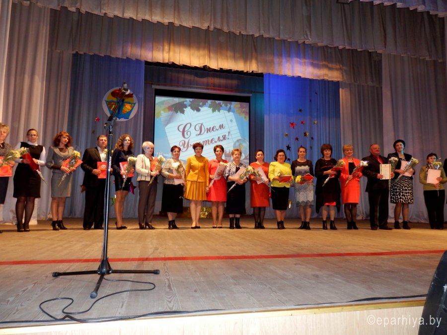 В Городском центре культуры города Светлогорска прошло торжественное собрание, посвященное Дню учителя. В зале собрались педагоги и руководители школ города и района, чтобы вместе отметить свой профессиональный праздник. Поздравить педагогов пришли руководители отделов райисполкома, районного Совета депутатов и духовенство Белоруской Православной Церкви. Благочинный Светлогорского округа протоиерей Александр Кисель поздравил всех с праздником Воздвижения Честнаго и Животворящего Креста Господня и наступающим Днем учителя. В своем поздравительном слове он подчеркнул, какую важную миссию несет учитель, давая знания ученикам, и как эталон знаний является примером для подражания. Протоиерей Александр Кисель пожелал здравия, мира, долгоденствия и радости в семьях и Божьего заступничества. – В этот день мы чествуем людей, посвятивших свою жизнь будущему нашей страны, – сказал в приветственном слове председатель Светлогорского районного Совета депутатов Сергей Горбачев, – Именно учителя выполняют нелегкую, но крайне почетную миссию воспитания и обучения молодого поколения нашей Республики. Сергей Валентинович отметил, что белорусское учительство – надежная опора государству. Он пожелал педагогам крепкого здоровья и благополучия, мира и добра. Поздравила учителей с профессиональным праздником депутат Палаты представителей Национального собрания Республики Беларусь Галина Филиппович. – Из года в год, мы не перестаем удивляться и гордиться успехами ваших учеников, – сказала она. – Есть своя марка на Светлогорщине в системе образования. Каждое новое пополнение учителей продолжает традиции, собранные и накопленные на протяжении многих десятилетий. Успешность наших детей – это огромная заслуга педагогов, которые неустанно трудятся на ниве просвещения. На протяжении торжественного мероприятия педагогов награждали Почетными грамотами райисполкома, Совета депутатов, Министерства образования Республики Беларусь. |