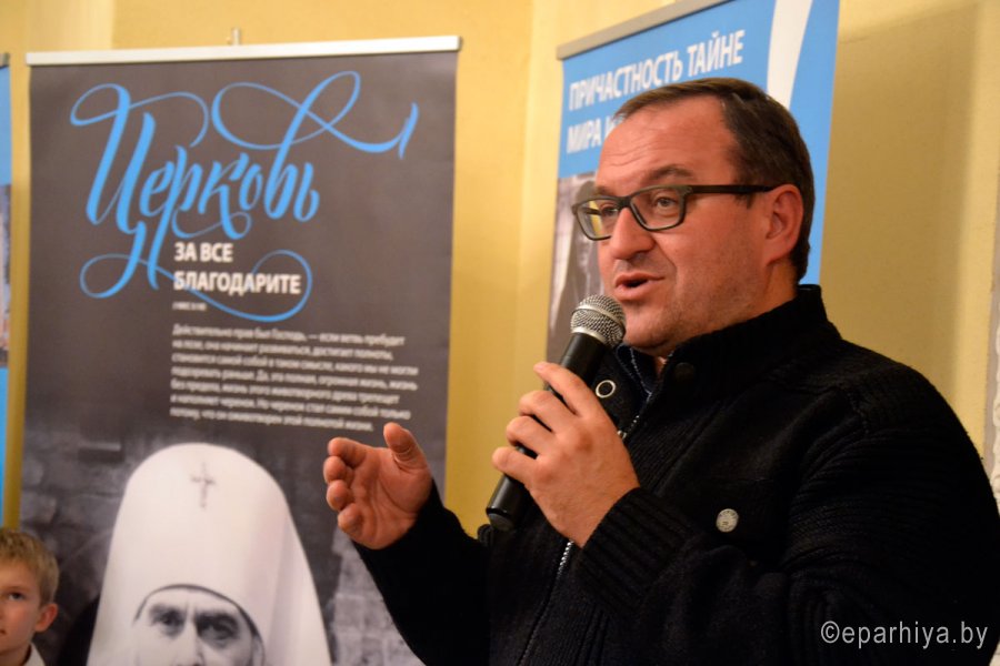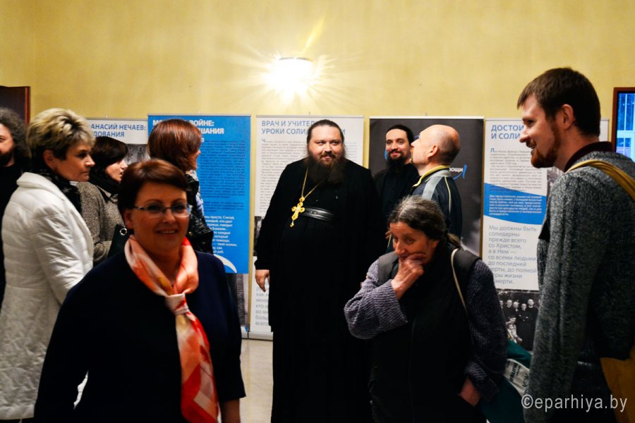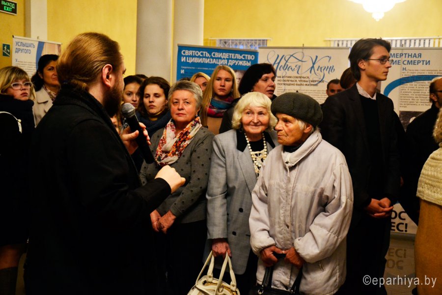 10 октября в центральной городской библиотеке им. А.И. Герцена открылась выставка «Митрополит Антоний Сурожский. Жизнь для меня – Христос». По инициативе Свято-Никольского мужского монастыря впервые гомельской публике представилась уникальная возможность подробнее познакомиться с этапами жизненного пути митрополита Сурожского Антония (1914 — 2003), легендарного владыки, выходца из среды российских эмигрантов, больше полувека прослужившего епископом в Лондоне и имевшего грандиозную популярность как за границей, так и в Советском Союзе. Один из кураторов выставки теолог, преподаватель Высшего института религиозных наук святого Фомы Аквинского в Киеве, кандидат философских наук Александр Филоненко был лично знаком с владыкой Антонием. Он и провел первую экскурсию для посетителей, заостряя внимание аудитории на цитатах, документах, фотографиях, представляемых публике впервые. Вообще выставка задумывалась для ежегодного христианского культурного форума в Италии. Работа над проектом настолько сплотила молодых миссионеров-единомышленников из России, Беларуси, Украины и Италии, что успех выставки в г. Римини послужил началом для дальнейших встреч. «Встреча — всегда радость, всякая встреча от Бога, потому что всякая встреча — это мгновение, когда люди оказываются лицом к лицу иногда на очень короткое мгновение, а вместе с тем и навсегда, ибо, раз встретившись сердцем, верой, любовью, общей надеждой, под сенью общего креста, под сиянием общего грядущего победного воскресения, уже расстаться нельзя, расстояния земли людей не разлучают», — этими словами владыки Антония руководствовались создатели выставки. В Гомеле выставка «Митрополит Антоний Сурожский. Жизнь для меня – Христос» продлится до 20 октября. Каждый вечер в 17.00 и 18.00 волонтеры-кураторы выставки будут проводить экскурсии. |