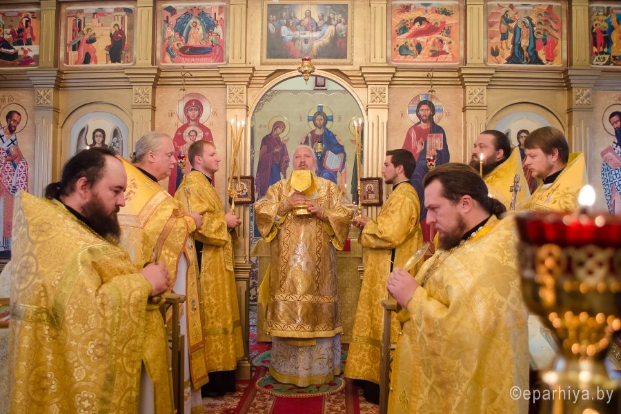 11 октября 2016г., в день памяти блг. кн. Вячеслава Чешского, Преосвященный Стефан возглавил Божественную литургию в храме святителя Василия Великого, г. Жлобина. Преосвященному сослужили: секретарь Гомельской епархии протоиерей Георгий Алампиев, благочинный монастырей Гомельской епархии, наместник Свято-Никольского мужского монастыря архимандрит Амвросий (Шевцов), благочинный Жлобинского округа протоиерей Василий Пилипенко и духовенство благочиния. По заамвонной молитве владыка вознёс молитву о мире в Украине. По окончании богослужения Владыка поздравил иерея Вячеслава Рябицу с Днем Тезоименитства. Преосвященный поздравил причастников с принятием Святых Христовых Таин, обратился к молящимся со словами назидания и преподал всем архипастырское благословение. |