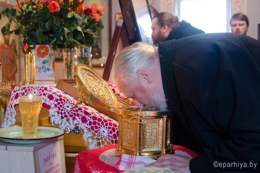 11 октября 2016г., в ходе своего визита в Жлобинского благочиние, Преосвященнейший Стефан совершил рабочую поездку в строящийся храм мч. Иоанна Воина г.Жлобина. Владыка ознакомился с ходом строительных работ и состоянием дел на приходе. Настоятелю храма Преосвященный пожелал помощи Божией в дальнейших работах по благоустройству и строительству вверенного храма. Преосвященный помолился у ковчега с частицей мощей св. блж. Матроны Московской, который с 1 по 21 октября пребывает в храме, для молитвенного поклонения верующих. |