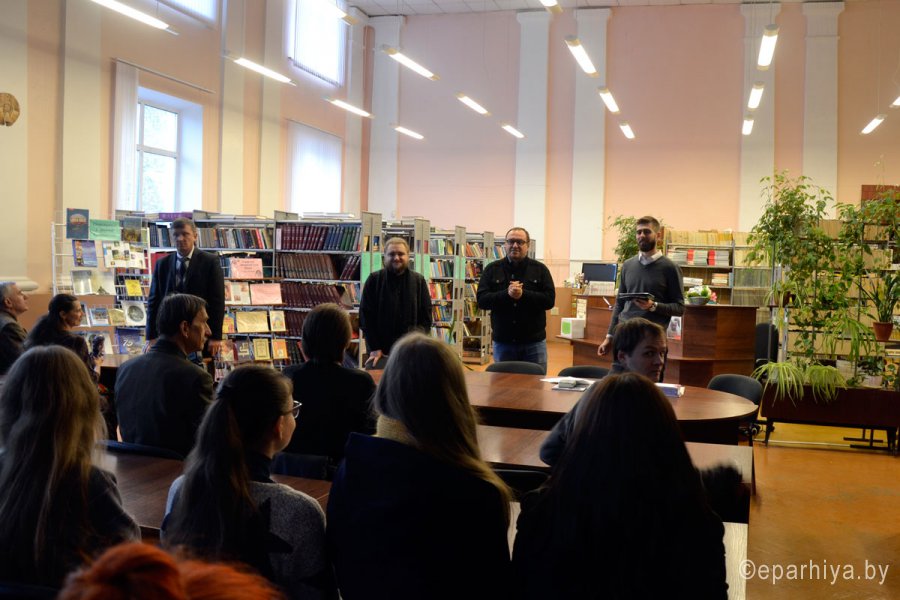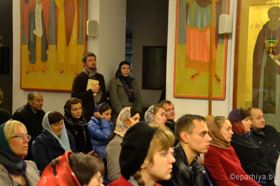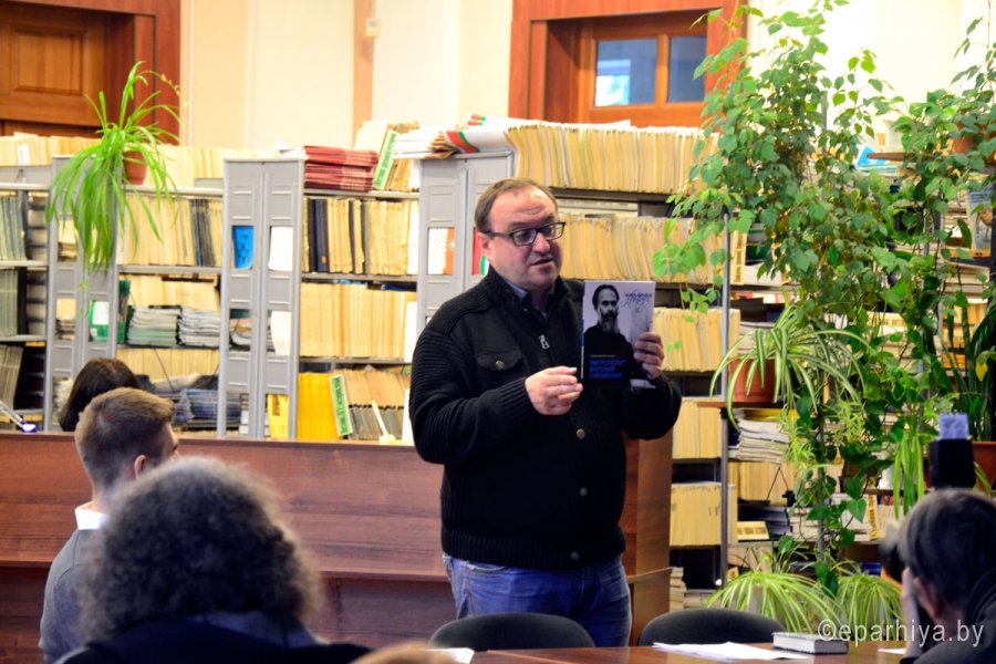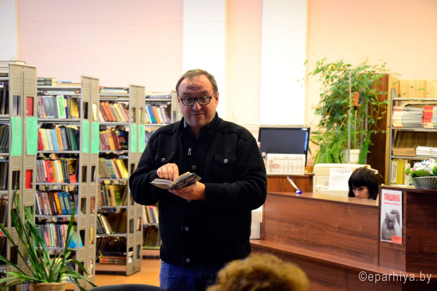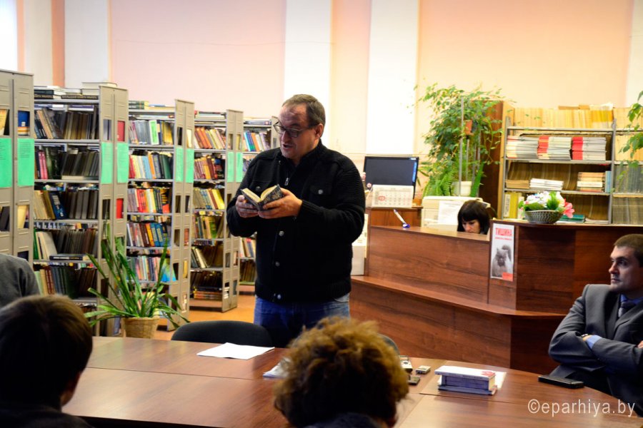 Выставка, посвященная митрополиту Антонию Сурожскому, что открылась 10 октября в Гомельской центральной городской библиотеке им. А. И. Герцена по инициативе Свято-Никольского мужского монастыря, встречает посетителей словами владыки Антония: «Господь нам дал сегодня встретиться». Эти слова можно использовать как эпиграф к ряду мероприятий, которые уже состоялись и еще произойдут, пока выставка будет находиться в нашем городе. Воскресным вечером, 9 октября в храме святителя Николая Чудотворца монастырского комплекса известный не только в церковных кругах теолог, богослов и философ Александр Семенович Филоненко выступил перед прихожанами с лекцией. Надо сказать, что это не первый визит ученого в Гомель. В феврале 2014 года Александр Семенович посещал наш город по приглашению Свято-Никольского мужского монастыря и, как и сейчас, выступал перед публикой с циклом лекций. Студенты и преподаватели исторического, математического и физического факультетов Гомельского университета им. Ф. Скорины смогли пообщаться с ученым и услышать его авторитетное слово в понедельник, 10 октября. Вечером этого же дня Александр Семенович как один из кураторов выставки «Митрополит Антоний Сурожский. Жизнь для меня – Христос» провел первую экскурсию для посетителей Герценки после открытия экспозиции. Сегодня,12 октября в 18.00 в библиотеке Герцена состоится еще одна встреча. Юлия Штонда, молодой ученый из Воронежа, исследователь духовного наследия митрополита Антония Сурожского, предложит всем желающим поразмышлять над проповедями легендарного владыки Антония. Тема ее лекции называется «Евангелие и жизнь». Напомним, что каждый вечер в 17.00 и 18.00 волонтеры-кураторы выставки будут проводить экскурсии для желающих узнать об этапах жизненного пути митрополита Антония Сурожского. |