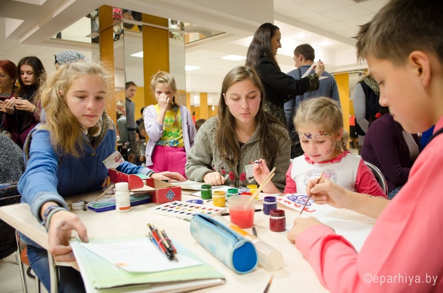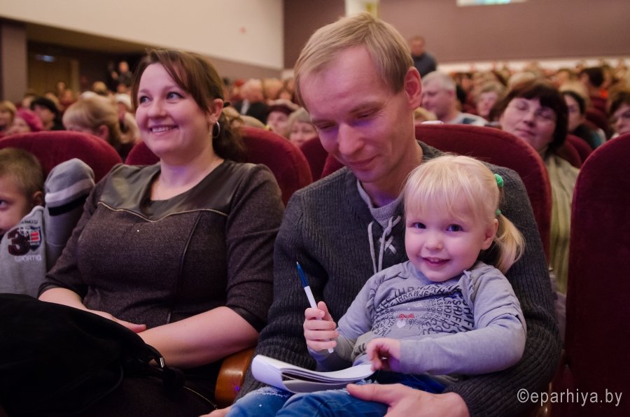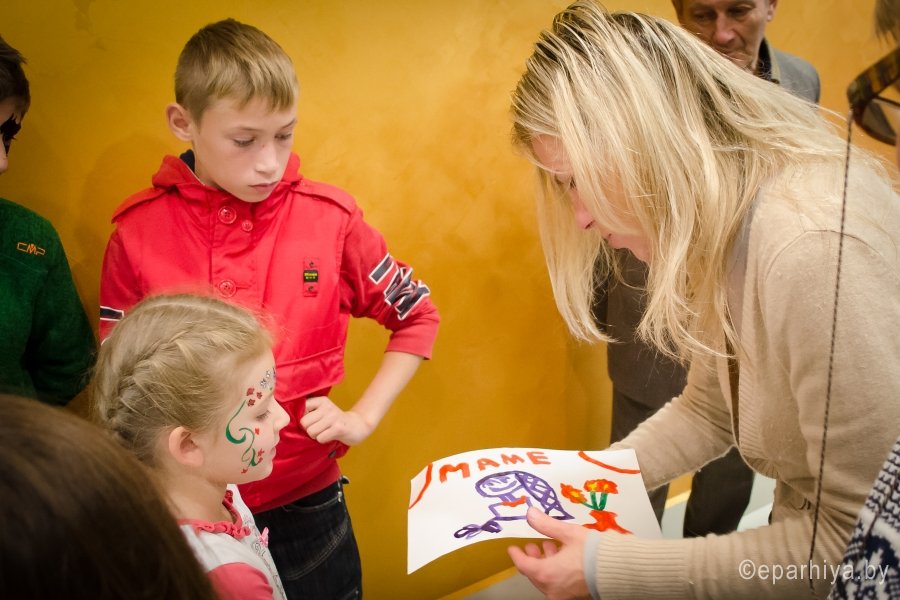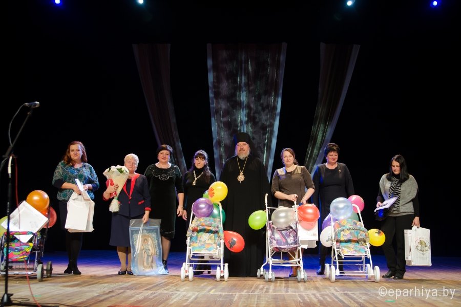 Преосвященный Стефан принял участие в праздничном концерте, «Поговори со мною, мама», посвященном Дню матери. Мероприятие было организовано Гомельской епархией, Гомельским городским центром социального обслуживания семьи и детей совместно с Домом гражданских обрядов Гомельского горисполкома, ГУ «Городской центр культуры» и Областной организацией Белорусского общества Красного Креста. Праздник для мам в городском центре культуры начался прямо в холле – здесь развернулось несколько площадок. Приглашенных гостей – а их здесь было около пятисот – встречали с подарками. Обращаясь к присутствующим Преосвященный Стефан поздравил с Днем Матери и праздником Покрова Пресвятой Богородицы присутствующих женщин, матерей. В своих словах Владыка особо обозначил значимость женщины-матери в жизни каждого человека. Праздничную программу решили максимально разнообразить – весь репертуар специально создавался тематически ко Дню матери. Работала авторская выставка ручных работ с мастер-классом. Родители с детьми пели в караоке и обучались искусству боди-арт. Концертную программу начали с чествования многодетных матерей. На праздник пригласили не только многодетных, но и мам, воспитывающих приемных детей, детей инвалидов. Пригласительные билеты достались и категории малообеспеченных семей. Кроме концерта, женщинам дарили подарки представители городской власти и различных организаций. |