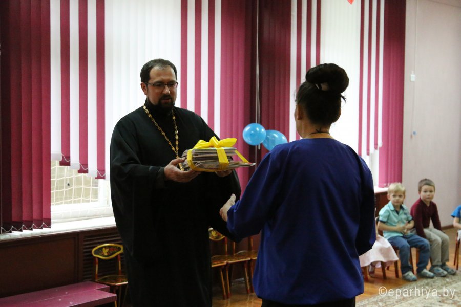 14 октября, в день Покрова Пресвятой Богородицы свою любовь подарили мамам воспитанники детского сада № 111 в праздничном развлекательном мероприятии «Моя мама самая, самая...». Постоянный гость в детском учреждении — протоиерей Игорь Ольшанов, настоятель храма святого Архангела Михаила в г. Гомеле. Священнослужитель поздравил работников детского сада и родителей воспитанников с праздником, а также пожелал всем мамам здоровья, душевного спокойствия и Божьей помощи в воспитании малышей. В подарок о. Игорь преподнес в библиотеку учреждения православные книги. |