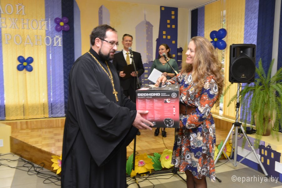 Центр творчества детей и молодежи Советского района не случайно назван Центром, ведь именно здесь открываются и развиваются юные таланты. Отличительной приметой Центра становится зарождение традиций, одной из которых стало празднование Дня матери. В этот день, особый день, почести воздаются женщинам, которые гордо несут имя МАМА. 14 октября в день Покрова Пресвятой Богородицы в теплой и непринужденной обстановке состоялось чествование многодетных семей, а также вручение ордена Матери. В этом году эту этой почетной награды удостоена мама пятерых детей Ольга Елисеева, жизненное кредо которой звучит так «Ведь женщиной быть прекрасно! Женскому искусству можно научиться. Научиться легко рожать, вдохновлять, мудро направлять». Награду вручил глава администрации Советского района г. Гомеля Д. В. Алейников. По благословению Преосвященнейшего Стефана благочинный Гомельского городского округа протоиерей Игорь Ольшанов поздравил всех собравшихся с праздником Покрова Пресвятой Богородицы, а также передал Ольге Елисеевой ценный подарок: «Образ матери в Православной церкви имеет огромное значение как образ чистоты и особого почитания. И поэтому хочется пожелать в этот день света и душевного тепла нашим матерям — хранительницам семейного очага и благополучия». |