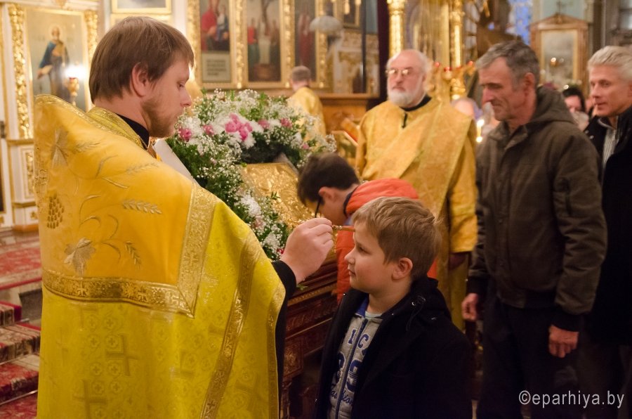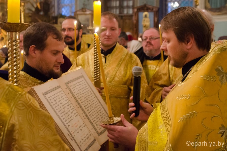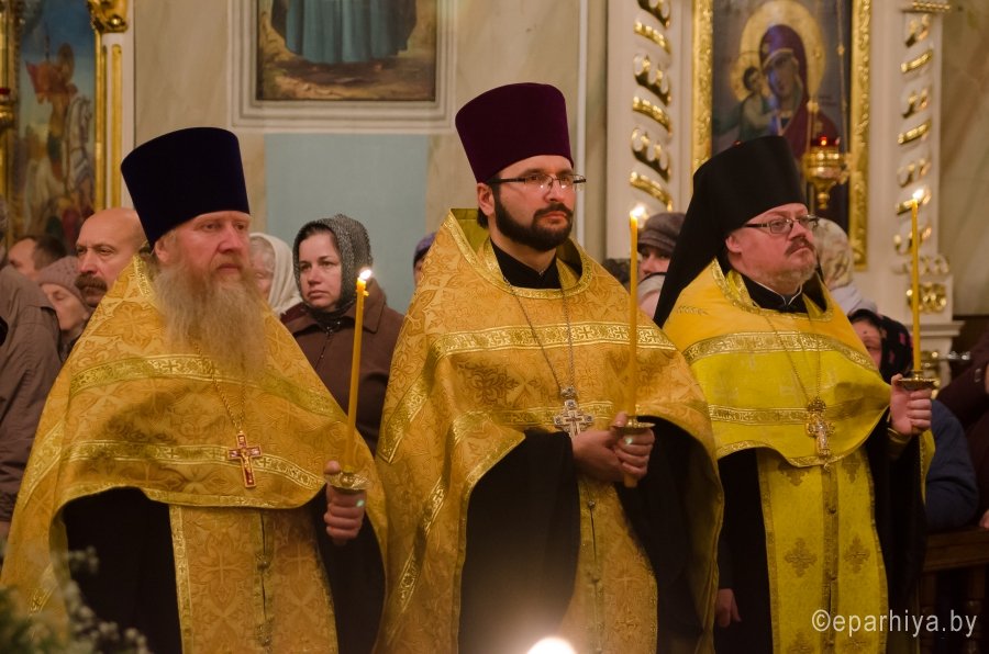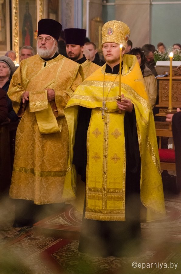15 октября 2016г., в канун Недели 17-й по Пятидесятнице, секретарь Гомельской епархии протоиерей Георгий Алампиев в сослужении духовенства собора совершил всенощное бдение в Свято-Петро-Павловском кафедральном соборе г.Гомеля. |