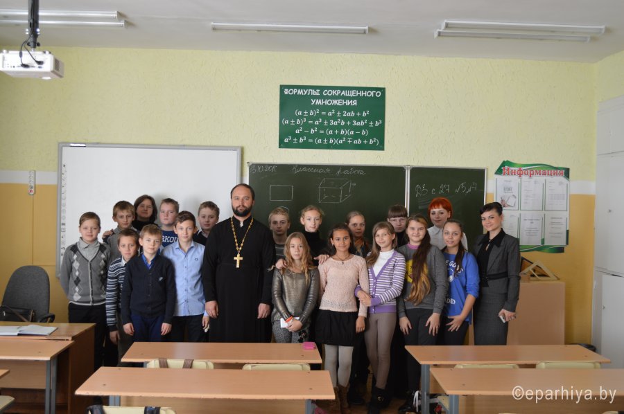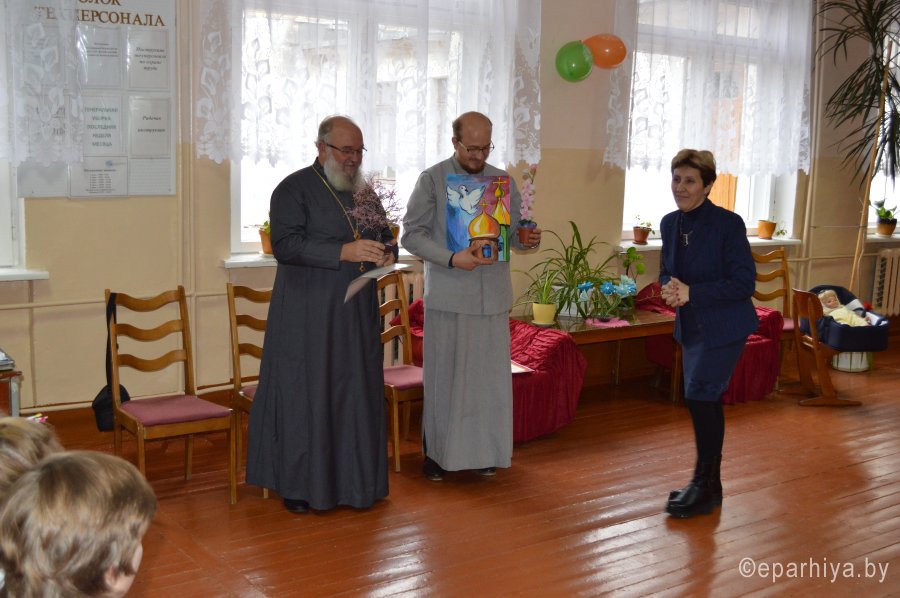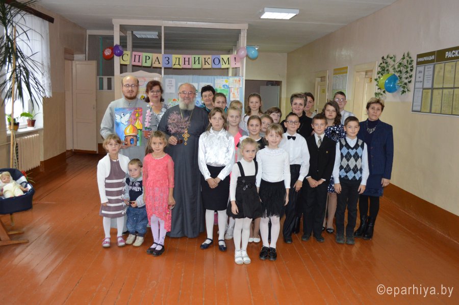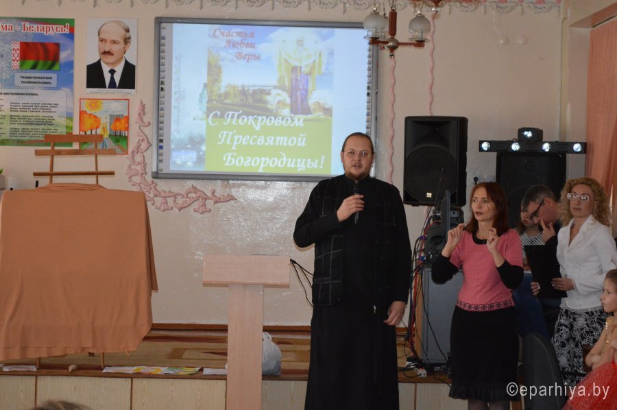 13 октября клирик Свято-Успенского собора г. Речицы, протоиерей Ростислав Миронович был приглашен в 6 "В" класс ГУО СШ № 2 на беседу посвященную православному празднику "Покров Пресвятой Богородицы" и государственному празднику "День матери". Священник рассказал ребятам об истории возникновения праздника церковного и о том, что уже в новейшей истории Республики Беларусь был установлен праздник "День матери", который был приурочен к дню празднования Покрова Божией Матери, когда все мы испрашиваем у Царицы Небесной защиты и помощи. Затем протоиерей Ростислав ответил на многочисленные вопросы школьников и пожелал им всегда прибегать за помощью к Божией Матери, первой ходатаице за нас перед Богом. Так же, клирик Свято-Успенского собора г. Речицы, диакон Сергий Порошин, в рамках плана взаимодействия между ГУО "Речицкая специальная общеобразовательная школа-интернат для детей с нарушением слуха" и приходом Свято-Успенского собора Речицкого благочиния, принял участие в праздничном мероприятии посвященном Покрову Пресвятой Богородицы и "Дню матери", подготовленную воспитанниками школы-интерната. Ребята с интересом "слушали", с сурдопереводом, священную историю произошедшую во Влахернской церкви Царьграда в середине Х века и в память о которой и установлен этот праздник. Затем был концерт. Ребята пели и танцевали, были конкурсы с мамами и поздравления для мам. Было весело и очень трогательно. По доброй традиции 14 октября в праздник Покрова Пресвятой Богородицы и "Дня матери" молодые прихожане Свято-Успенского собора посетили с праздничными поздравлениями пожилых прихожан,которые по состоянию здоровья уже не могут посещать службу в храме. Для этих людей были приготовлены продуктовые наборы и исполнены стихи и песни о Божией Матери. 14 октября благочинный церквей Речицкого округа, протоиерей Алексий Пешко и настоятель прихода храма Святого Великомученика Георгия Победоносца агрогородка Белое Болото Речицкого района иерей Николай Барсуков приняли участие в празднике в честь Покрова Пресвятой Богородицы и "Дня матери", который прошел в ГУО «Белоболотский детский сад - базовая школа». Небольшая концертная программа была подготовлена силами учащихся и преподавателей школы. На праздник, в качестве почетных гостей, были приглашены мамы учеников. Ребята рассказывали для своих мам стихотворения, пели и танцевали, а также показывали небольшие сценки. Праздник прошел в теплой, душевной атмосфере. По окончании концертной программы слово взял протоиерей Алексий, который поблагодарил детей и весь коллектив школы за доставленную радость и пользуясь случаем вручил благодарственные письма Речицкого благочиния тем ребятам, которые приняли участие в Международном конкурсе детского творчества "Красота Божьего мира" и работы которых были выставлены здесь же в зале. В этот же день храм Святого Великомученика Георгия Победоносца агрогородка Белое Болото и Свято-Покровский источник в деревне Чёрное с паломнической поездкой посетили сотрудницы Речицкого районного отдела по чрезвычайным ситуациям учреждения «Гомельское областное управление МЧС Республики Беларусь". |