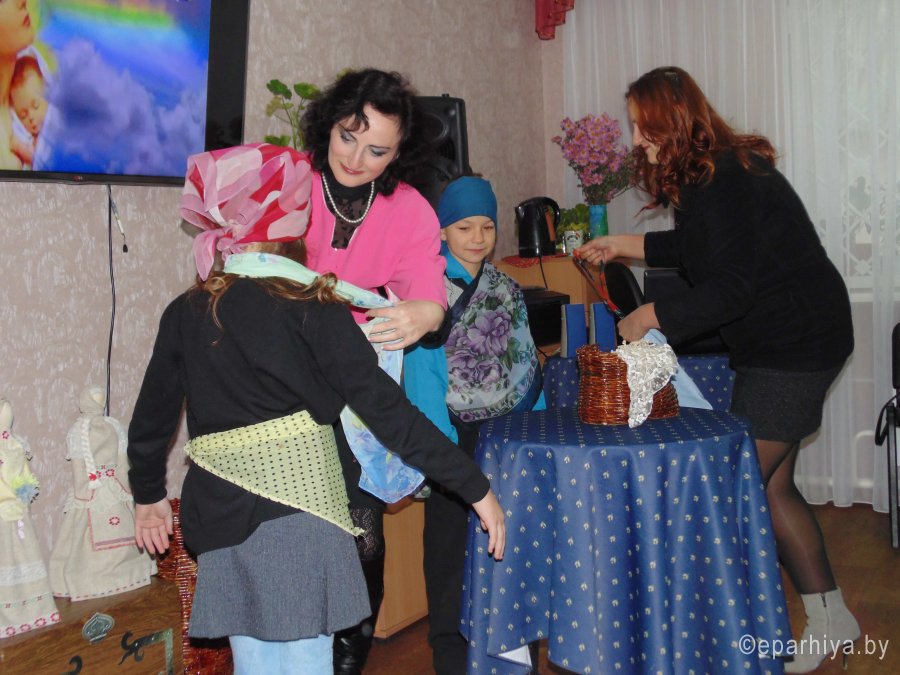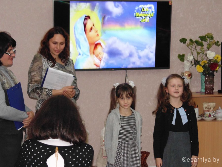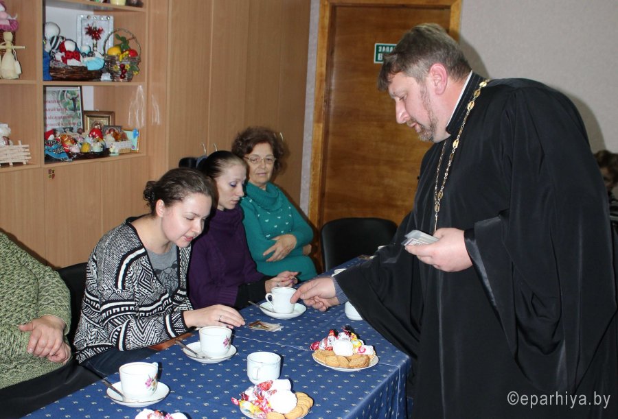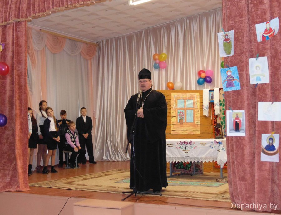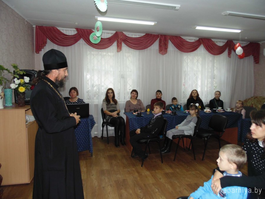 В Добрушском благочинии прошёл ряд мероприятий, посвященных празднованию Праздника Покрова Пресвятой Богородицы и Дня матери. 12 сентября 2016 года в отделении дневного пребывания для инвалидов ГУ «Территориальный центр социального обслуживании населения» Добрушского района накануне праздника Покрова Божией Матери состоялось праздничное заседание клуба матерей воспитанников центра. Открыл мероприятие протоиерей Александр Ханаев, ответственный за социальное служение в благочинии. Он поведал всем собравшимся историю явления Божией Матери в Константинопольском храме, объяснил, почему день Покрова стал праздником всех матерей. Священнослужитель призвал приходить молиться в храм. Он говорил, что нельзя замыкаться на своих проблемах, и хорошо, когда есть с кем поделиться горем, научил, как нужно молиться Господу и Пресвятой Богородице и уверил, что с Божьей помощью все невзгоды проходят, Господь посылает людей или ситуации, и проблемы решаются. Отец Александр подарил всем иконы-благословение. А 14 октября там же состоялось чествование многодетных матерей. С поздравительным словом выступил настоятель прихода храма Святителя Николая Чудотворца д. Поповка (Ленино) протоиерей Василий Грек. Сам будучи отцом пятерых детей, отец Василий не понаслышке знаком с жизнью многодетной семьи, с ее радостями и трудностями. Потому так тепло, искренне и проникновенно звучали его слова поздравлений в адрес приглашенных матерей. В завершение священник подарил всем желающим освященное масло для лечения болезней и иконы. Как и полагается на праздниках были песни, игры, весёлые конкурсы. Во время чаепития состоялись беседы матерей со священниками. 15 октября 2016 года в ГУО СШ №5 города Добруша прошел утренник, приуроченный празднику Покрова Пресвятой Богородицы и Дню матери. Гостей праздника приветствовал благочинный Добрушского округа протоиерей Алексий Пилипенко. «Я всегда радуюсь таким встречам, — говорил отец Алексей в своём слове, — праздники несут заряд благодатной духовной семейной энергии. Слава Богу, что наше государство уделяет такое внимание мамам, и ещё больше радуюсь, что этот праздник совпадает с праздником Покрова Пресвятой Богородицы. Чтут люди в нашей стране этот праздник, потому что кто быстрее услышит нас в наших бедах и в радостях, — конечно мама. Пресвятая Богородица — наша общая мама. Она всегда слышит нас в молитвах». Священник пожелал всем собравшимся матерям и отцам радости духовной, благодати Божьей и всех благ земных. |