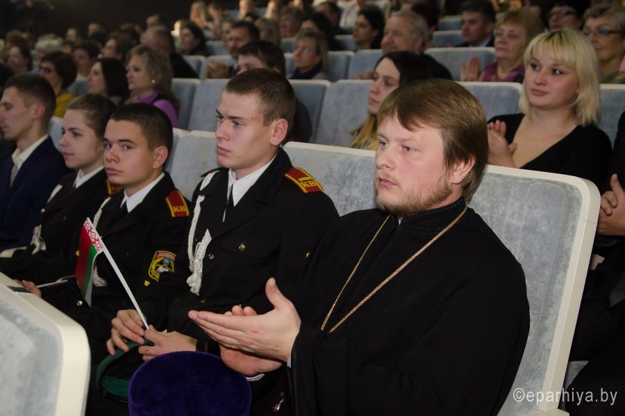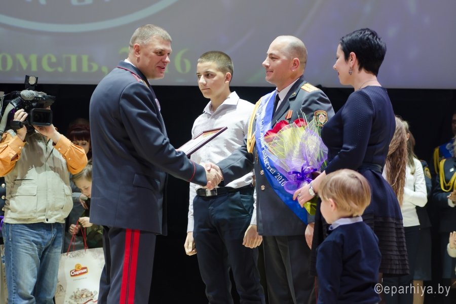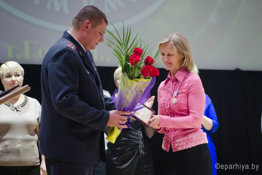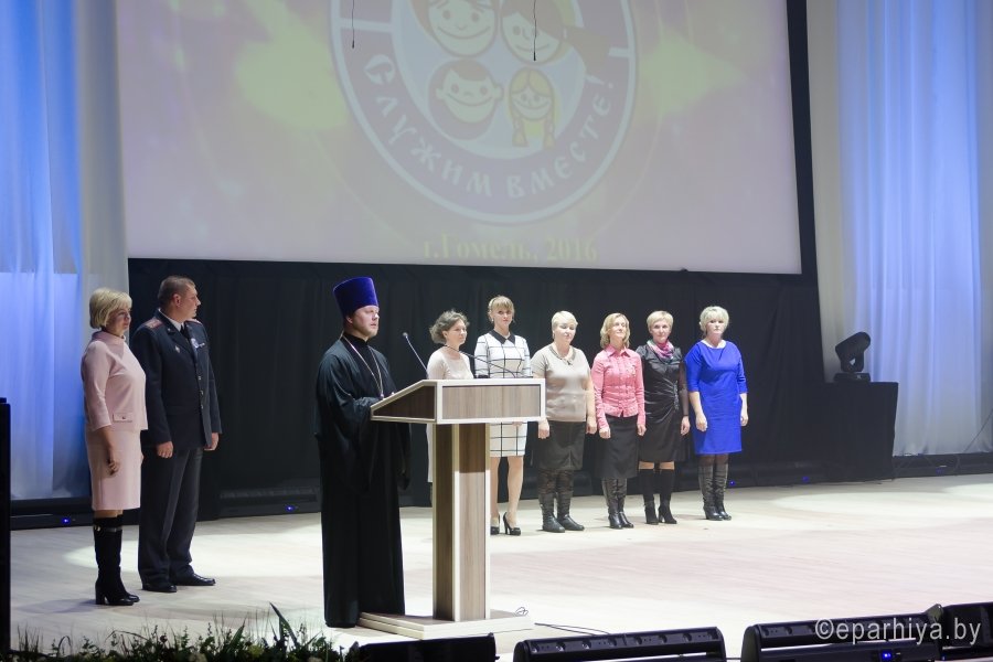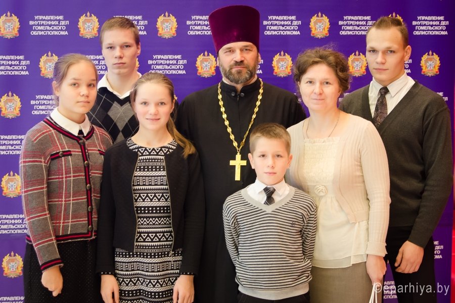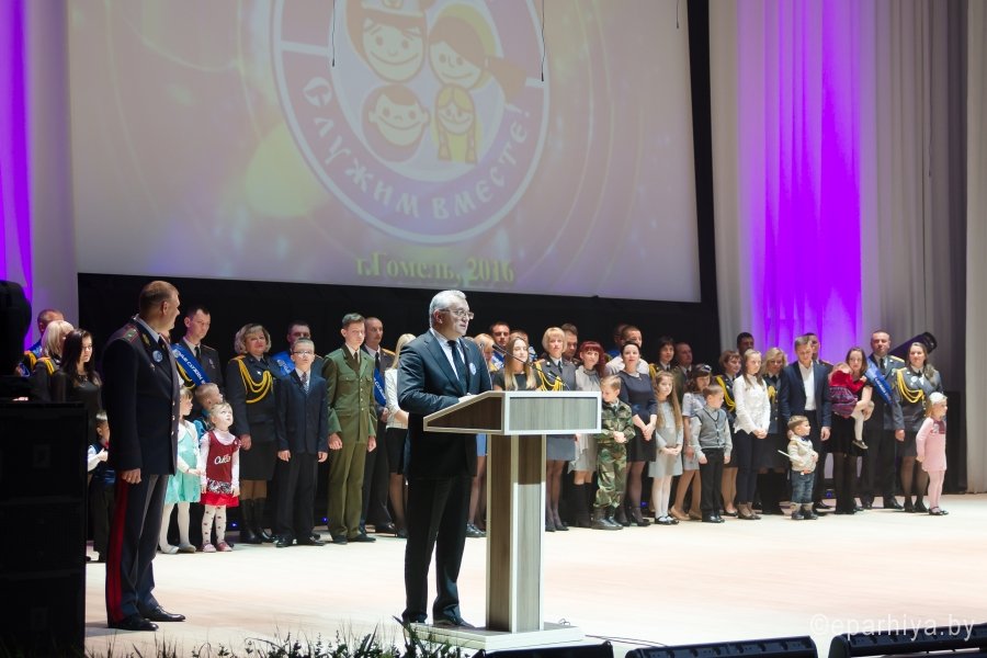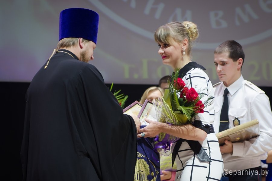 21 октября 2016г. финал республиканской акции МВД «Семья! Служим вместе!», приуроченной ко Дню матери, по благословению Преосвященного Стефана посетил секретарь Гомельской епархии протоиерей Георгий Алампиев. Протоиерей Георгий Алампиев обратился к присутствующим со словами поздравления и вручил памятные подарки многодетным матерям, которые посвятили себя без остатка воспитанию как своих родных, так и приемных детей. Благодарности Министерства внутренних дел Республики Беларусь, уникальные дипломы участников республиканской акции «Семья! Служим вместе!» и памятные подарки участникам акции вручили заместитель Министра внутренних дел Республики Беларусь по идеологической работе и кадровому обеспечению генерал-майор милиции Александр Аркадьевич Кобрусев и председатель Гомельского областного Совета Депутатов Олег Леонидович Борисенко. В холле Гомельского областного концертного зала была размещена выставка народного творчества, художественные работы участников акции, демонстрировались показательные выступления учащихся специализированных спортивных школ. |