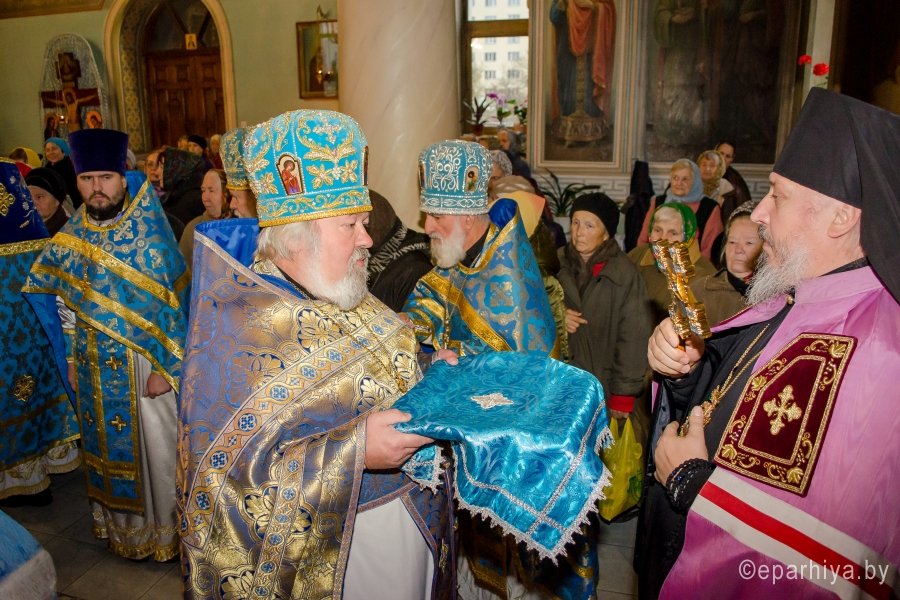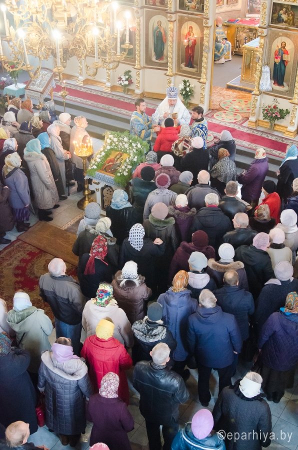 26 октября 2016г. - день Иверской иконы Божией Матери, принесенной на Русь с Афона в середине XVII столетия. Святого образа, объединяющего многие православные народы. Особенно, сегодня, это можно было почувствовать в храме Иверской иконы Божией Матери. Где при многочисленном собрании верующих, паломников и духовенства Преосвященный Стефан, епископ Гомельской и Жлобинский возглавил Божественную Литургию. Преосвященному сослужили: секретарь Гомельской епархии протоиерей Георгий Алампиев, духовник Гомельской епархии протоиерей Стефан Гладыщук, благочинный монастырей Гомельской епархии архимандрит Амвросий (Шевцов), настоятель храма протоиерей Георгий Тур, благочинный Гомельского округа протоиерей Игорь Ольшанов и духовенство храма и епархии. По заамвонной молитве Владыка вознёс молитву о мире в Украине. По окончании богослужения Владыка поздравил причастников с принятием Святых Христовых Таин и обратился к молящимся со словами Архипастырского назидания. ИЗ ИСТОРИИ ИВЕРСКОЙ ИКОНЫ ПРЕСВЯТОЙ БОГОРОДИЦЫ «В IX веке от Рождества Христова Иверская икона находилась у одной благочестивой вдовы, жившей близ города Никеи. Однажды еретики-иконоборцы пришли в дом этой христианки, и один из них копьем ударил по образу Богородицы. Тотчас из пораженного места потекла кровь... Для сохранения иконы женщина опустила святой образ в море, и святыня чудесным образом приплыла к Святой горе Афон, где её обрёл инок грузинского Иверского монастыря святой Гавриил Грузин...» |