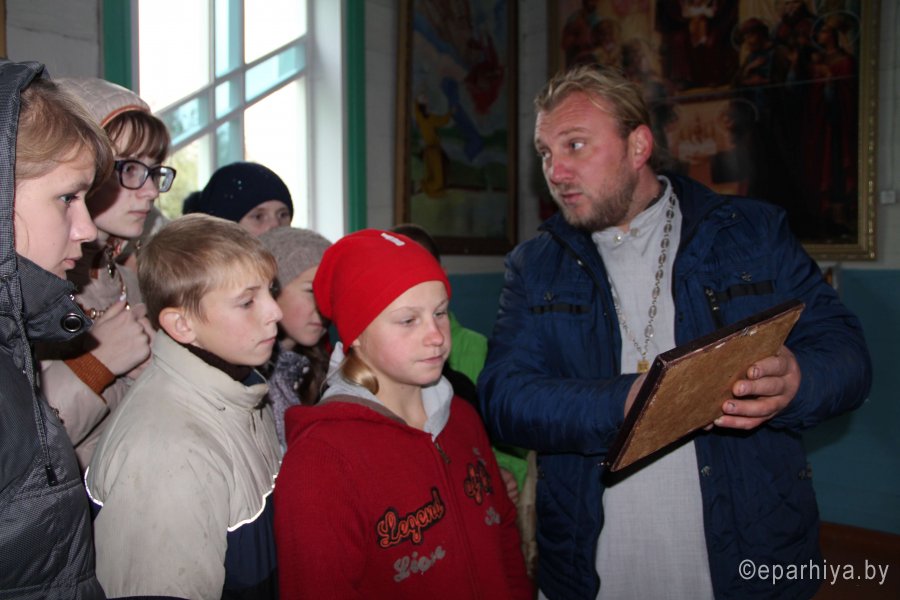 21 и 22 октября 2016 года в Добрушском благочинии состоялись экскурсии и беседы со священниками на тему "Святыни родного края". В районе расположено несколько храмов - памятников исторического и культурного наследия. В самом отдаленном уголке Добрушчины в деревне Красный Партизан (переим. Плутовка) расположен, пожалуй, самый красивый из них - храм Рождества Пресвятой Богородицы. Построенный в 1889 году он сохранился до наших дней, избежав участи многих храмов района, разрушенных в годы ВОВ и Советской власти. Настоятелем храма является протоиерей Василий Грек. 21 октября для группы детей и педагогов 6-10 классов Круговец-Калининской школы он провел экскурсию в этот замечательный храм, подробно рассказал историю храма, ответил на вопросы ребят. В частности ученики хотели узнать, какая икона в храме является самой главной. Отец Василий подвел их к "Распятию" и поведал ребятам о всепрощающей Любви Господней, Который с Креста не осуждает никого, но просит: "Отче прости им, ибо не ведают что творят". Ребята были восхищены архитектурой и убранством храма. Деревянная церковь в честь Святой Живоначальной Троицы в д. Крупец еще более древний храм. Он построен в 1830 году, и также является памятником архитектуры деревянного зодчества. 22 октября 2016 года храм посетила группа старшеклассников ГУО "Крупецкая СШ". Протоиерей Виталий Дерели, настоятель храма, рассказал ребятам о легендарном подвиге бывшего настоятеля отца Парфения, о том, как своим мужеством и самоотверженностью в годы Великой отечественной войны ему удалось спасти храм от сожжения фашистами. Рассказал о плащанице и ковчеге с мощами святых, хранящимися в храме. Школьники помогли храму, навели порядок на прилегающей территории. Мероприятия проводятся в рамках реализации плана II региональных Покровских образовательных чтений «Добрушчина: 1917-2017- уроки столетия». |