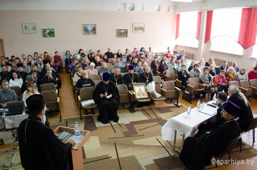 2 ноября 2016г. Гомельская епархия совместно с Отделом образования, спорта и туризма Гомельского района провели районный этап II Областных Покровских образовательных чтений. Встреча прошла на базе ГУО «Урицкая средняя школа». С приветственным словом к собравшимся обратились Преосвященнейший Стефан епископ Гомельский и Жлобинский и начальник Отдела образования, спорта и туризма Гомельского района Бейзеров Игорь Александрович. Общим пожеланием к участникам чтений стал призыв к реализации положительного опыта во взаимоотношениях между Церковью и школой, а так же к продолжению работы за рамками Покровских чтений. Председатель отдела религиозного образования и катехизации Гомельской епархии протоиерей Вадим Кочан в своем обращении к участникам чтений напомнил, что мы с болью вспоминаем о формализме существовавшем в отношении школы и Церкви в дореволюционной Росси, а среди преступников разрушавших храмы и людские жизни были те, у которых в аттестате была оценка «отлично» по предмету «Закон Божий». Наша задача не заставить людей преподавать «Закон Божий», а показать красоту живых отношений с Богом. Конференция прошла на тему: «1917-2017 – уроки столетия. Духовно-нравственные и историко-культурные ценности Гомельского региона в контексте исторических событий и человеческих судеб» . В ней приняли участие духовенство Гомельского районного благочиния Гомельской епархии, представители Отдела образования, спорта и туризма Гомельского района, директора и заместители директоров учреждений образования Гомельского района. Программа Свято-Покровских чтений состояла из двух частей. Пленарное заседание, с докладами на следующие темы: 1. «Священник Созонт Савич. История в лицах». Протоиерей Александр Лопушанский, клирик Свято-Петро-Павловского кафедрального собора г.Гомеля 2. «Задание на послезавтра. О сотрудничестве Церкви и школы». Петухов Виктор Иванович, учитель русского языка и литературы ГУО "Средняя школа N52 г. Гомеля". 3. «Потенциал краеведения в сотрудничестве Церкви и школы». Жгирова Наталья Сергеевна, координатор отдела Гомельской Епархии по связям с общественностью. 4. «Эвалюція ўзаемаадносін школы і Царквы на прыкладзе в.Грабаўка». Черняк Елена Дмитриевна, учитель истории государственного учреждения образования «Грабовский детский сад- средняя школа» 5. «Свеча: Православные традиции деревни Красное Гомельского района». Нащенцева София Евгеньевна,библиотекарь государственного учреждения образования «Красненская средняя школа» Вторая часть Свято-Покровских чтений прошла в рамках секционной работы на следующие темы: 1. «Новые возможности сотрудничества учреждений образования и Церкви в работе с учащимися, требующими повышенного педагогического внимания”. Тишкова Ирина Сергеевна, учитель русского языка и литературы ГУО "Средняя школа N12 г. Гомеля" 2. Духовно-нравственное воспитание подрастающего поколения через историю храма. Мастепанова Инна Валентиновна, педагог дополнительного образования ГУО "Урицкая средняя школа" 3. «Правовые нормы взаимоотношений Церкви и школы в республике Беларусь». Презентация выставки "Человеческий потенциал Отечества" Презентация фильма "Гражданский брак- иллюзия свободы". Протоиерей Артемий Кривицкий И.о. благочинного церквей Гомельского районного округа Гомельской Епархии. На