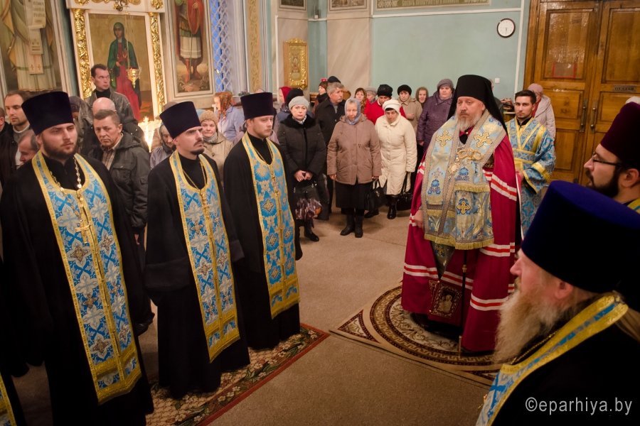 3 ноября 2016г., в канун праздника Казанской иконы Божией Матери, Преосвященный Стефан совершил всенощное бдение в Свято-Петро-Павловском кафедральном соборе г.Гомеля. Преосвященному сослужили: секретарь Гомельской епархии протоиерей Георгий Алампиев и духовенство собора. По окончании богослужения Владыка обратился к молящимся со словами Архипастырского назидания. |
